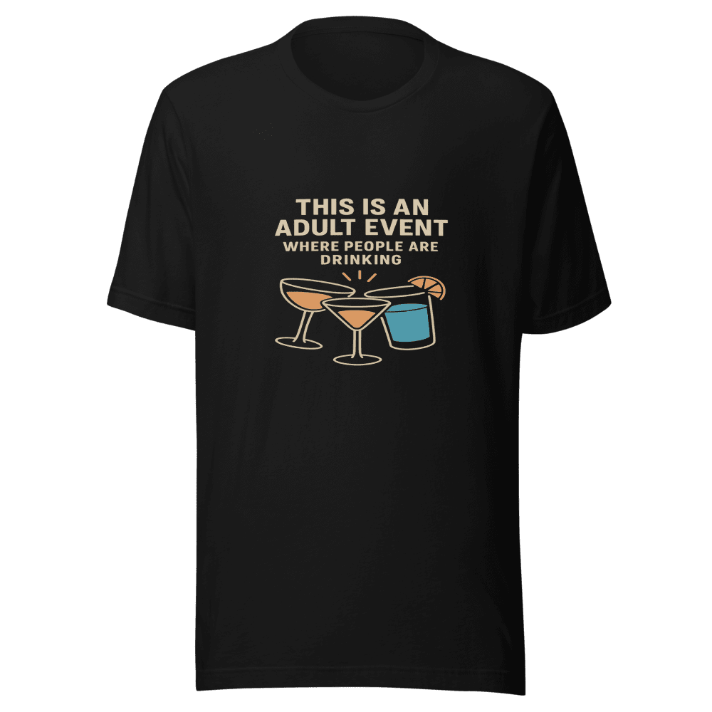 This adult event drinking t-shirt is going viral! You know the drill: adult gatherings where the drinks are flowing. This tee perfectly captures that vibe with a simple, humorous design. Be part of the trend and show off your understanding of adult social life. This t-shirt is perfect for parties, casual hangouts, or just making a statement. Grab yours now before they’re all gone! Featuring a comfortable fit and a design that everyone will appreciate. It is a must-have for anyone who enjoys a good laugh and a good time. Available in sizes S, M, L, and XL. Wash with normal settings. Add this hilarious tee to your wardrobe today!