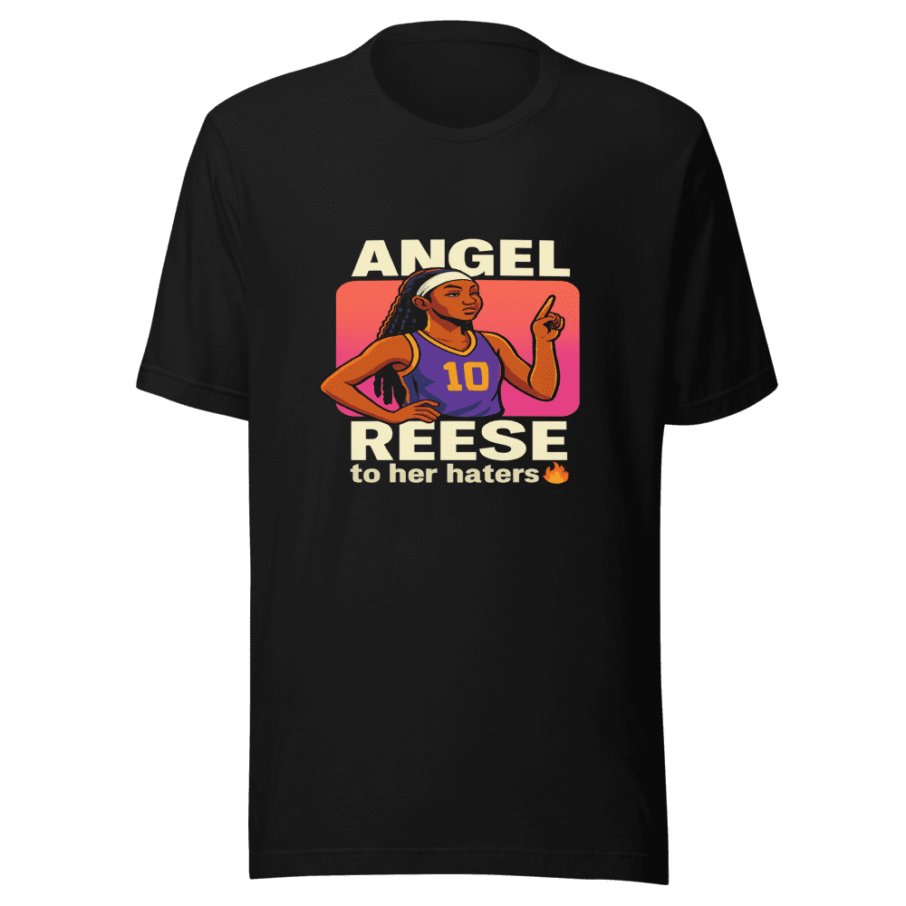 Slay the haters with our Angel Reese-inspired tee! This design captures the viral energy of standing tall against negativity. Seen all over social media, this tee is a must-have for anyone who owns their confidence. Be bold, be unapologetic, and let your style speak volumes. Get yours now before they’re gone! This high-quality t-shirt is made for comfort and style. Features a classic fit and durable print that will last. Available in sizes S, M, L, and XL. Wash instructions are normal. Don’t wait, join the movement and grab this limited-edition tee today!