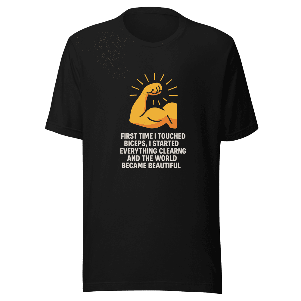 Unlock your inner vision with the Biceps Clarity T-Shirt! Inspired by the viral tweet that took the internet by storm, this tee embodies the hilarious and relatable feeling of newfound confidence after a good pump. Join thousands who understand the clarity that comes with those gains! This isn’t just a shirt; it’s a statement. Show the world you’re part of the movement. Feel the surge of motivation every time you wear it. The comfortable fit is perfect for workouts, casual hangouts, or making a bold statement. Made with high-quality, breathable fabric, this tee will keep you feeling fresh and confident all day long. Available in sizes S, M, L, and XL. Wash instructions are normal. Don’t miss out on this viral sensation – grab your Biceps Clarity T-Shirt now and experience the world in a whole new light! Limited stock available, so order today!