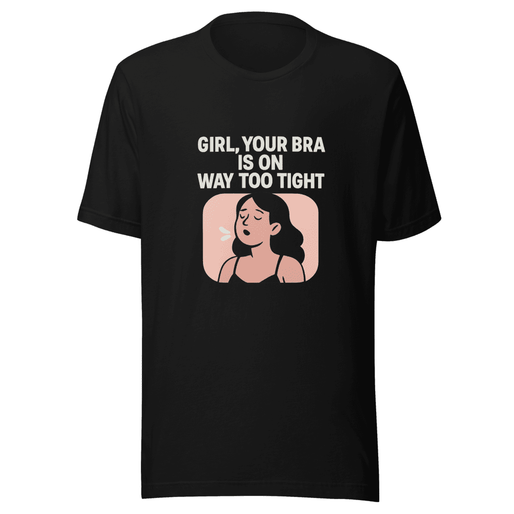 Feeling the squeeze? You’re not alone! This Bra Too Tight T-Shirt captures that universal feeling of wanting to rip off your bra at the end of a long day. Inspired by the viral tweet that had everyone nodding in agreement, this tee is the perfect way to show off your sense of humor and solidarity with fellow bra-wearers. Imagine the knowing smiles and instant connections you’ll make rocking this relatable design. Made from super-soft, breathable cotton, it’s the ultimate in comfort and style. Available in sizes S, M, L, and XL. Easy wash instructions. Don’t suffer in silence, grab your Bra Too Tight tee today and let the world know you understand the struggle! Join the movement and add this must-have to your wardrobe now before they’re all gone. Get yours today and feel the relief!