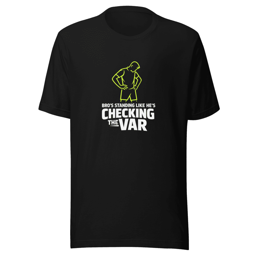 1 review for Bro’s Standing VAR Check Meme Football T-Shirt