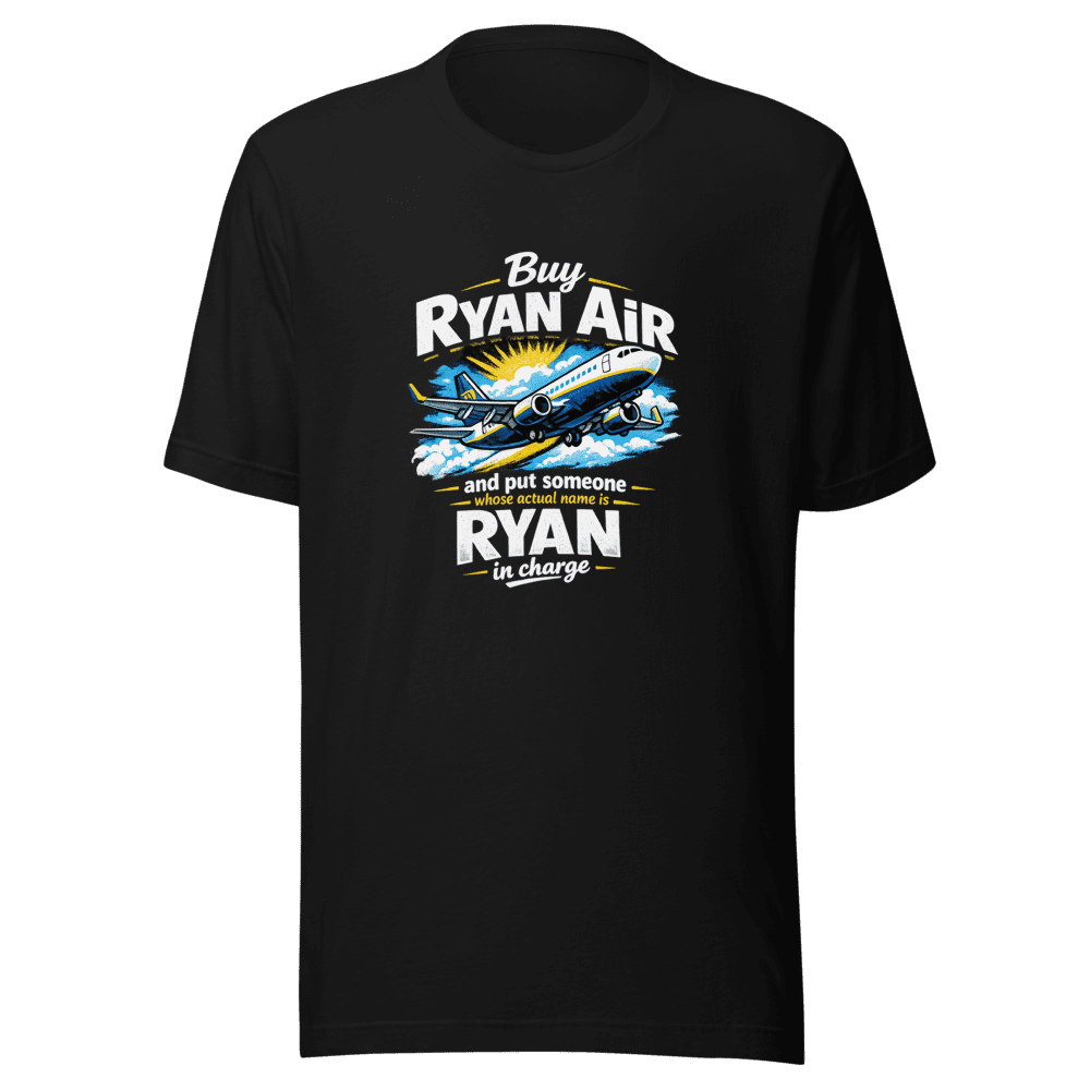 You saw the tweet, now wear the tee! This Buy Ryan Air T-Shirt is going viral, and you need to grab yours now before they’re all gone. Inspired by the iconic @elonmusk tweet, this shirt lets you show off your sense of humor and internet savvy. Be part of the trend and let everyone know you get the joke. Comfortable and stylish, this tee is perfect for everyday wear. It’s a conversation starter that’s sure to get you noticed. Don’t miss out on owning a piece of internet history. Get your Buy Ryan Air T-Shirt today and join the viral sensation! This T-shirt is available in sizes S, M, L & XL. Wash instructions are normal. Order yours now!