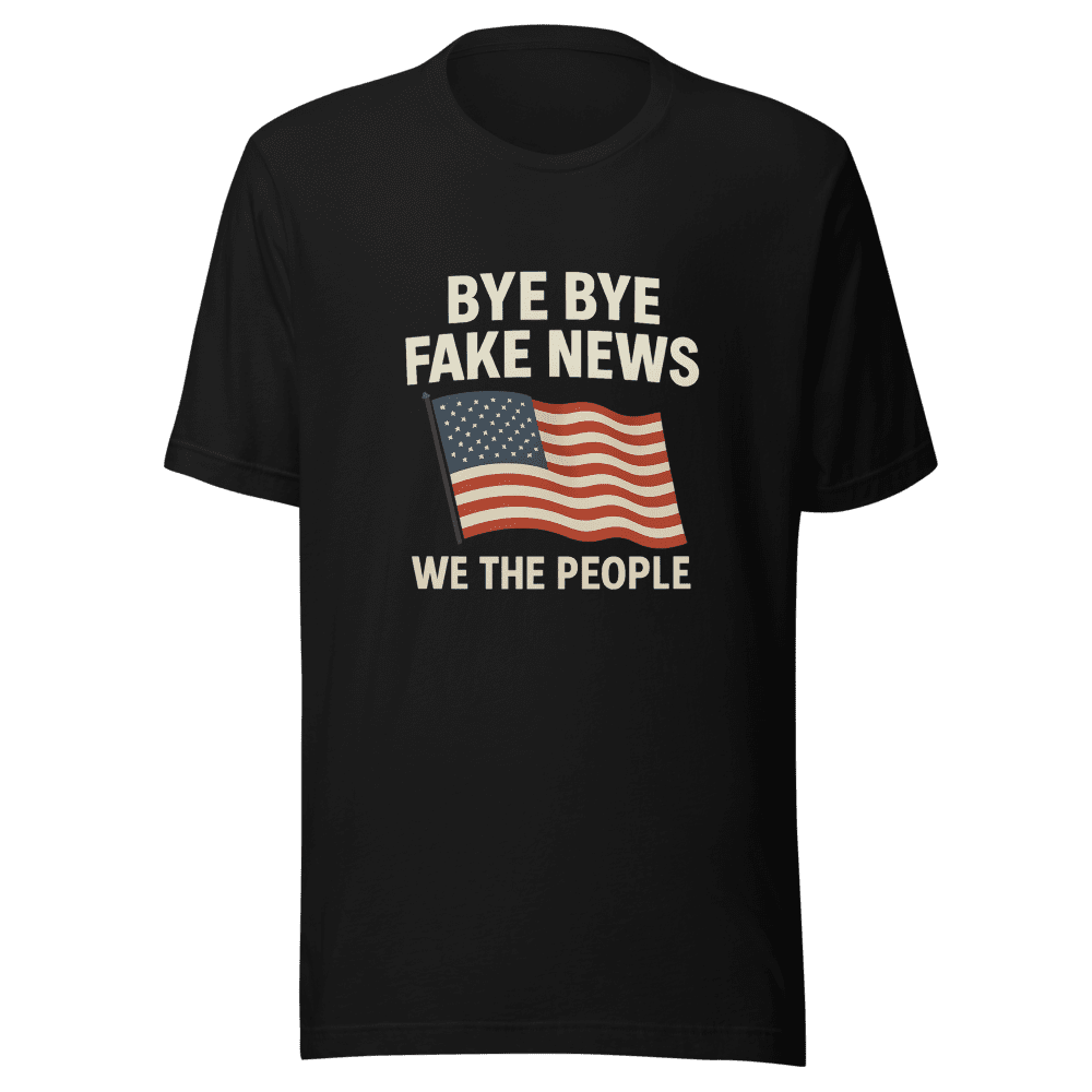 Don’t miss out on the viral sensation that’s taking the internet by storm! This Bye Bye Fake News t-shirt is inspired by the tweet that even got the attention of President Trump! Show your support and make a bold statement with this must-have tee. Join the movement and let your voice be heard. This tee isn’t just a piece of clothing; it’s a conversation starter, a symbol of freedom, and a badge of honor. Get yours now before they’re all gone! Wear it with pride, share your pics, and let’s keep the momentum going. This tee features a comfortable and stylish fit, perfect for everyday wear. Made from high-quality materials, it’s designed to last. Available in sizes S, M, L, and XL. Normal wash instructions. Be a part of something bigger. Order your Bye Bye Fake News t-shirt today and let the world know where you stand!