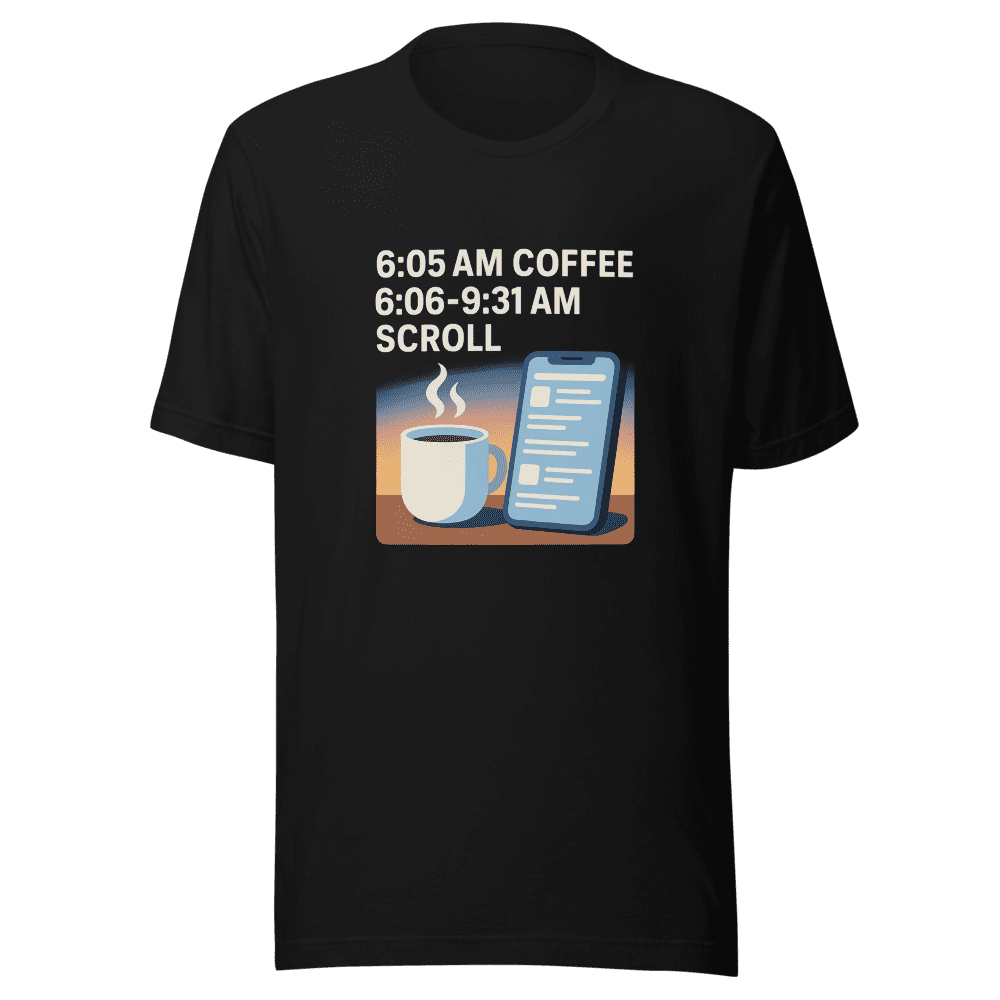 & Free ShippingCapture the viral moment! The Coffee Phone Scroll Aesthetic T-Shirt embodies that relatable struggle of morning productivity vs phone scrolling. Grab yours now!