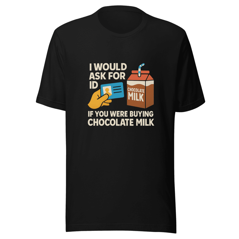 This Chocolate Milk ID Check T-Shirt is going viral! Seen all over your feed, this tee is a must-have for anyone who appreciates a good laugh and relatable content. Be part of the trend and grab yours now before they’re gone! This tee perfectly captures the humorous essence of the viral tweet. Show off your playful side and spark conversations wherever you go. Made with high-quality, soft fabric for ultimate comfort. Available in sizes S, M, L, and XL. Wash instructions are normal. Don’t miss out on the chance to own a piece of internet history. Order your Chocolate Milk ID Check T-Shirt today!