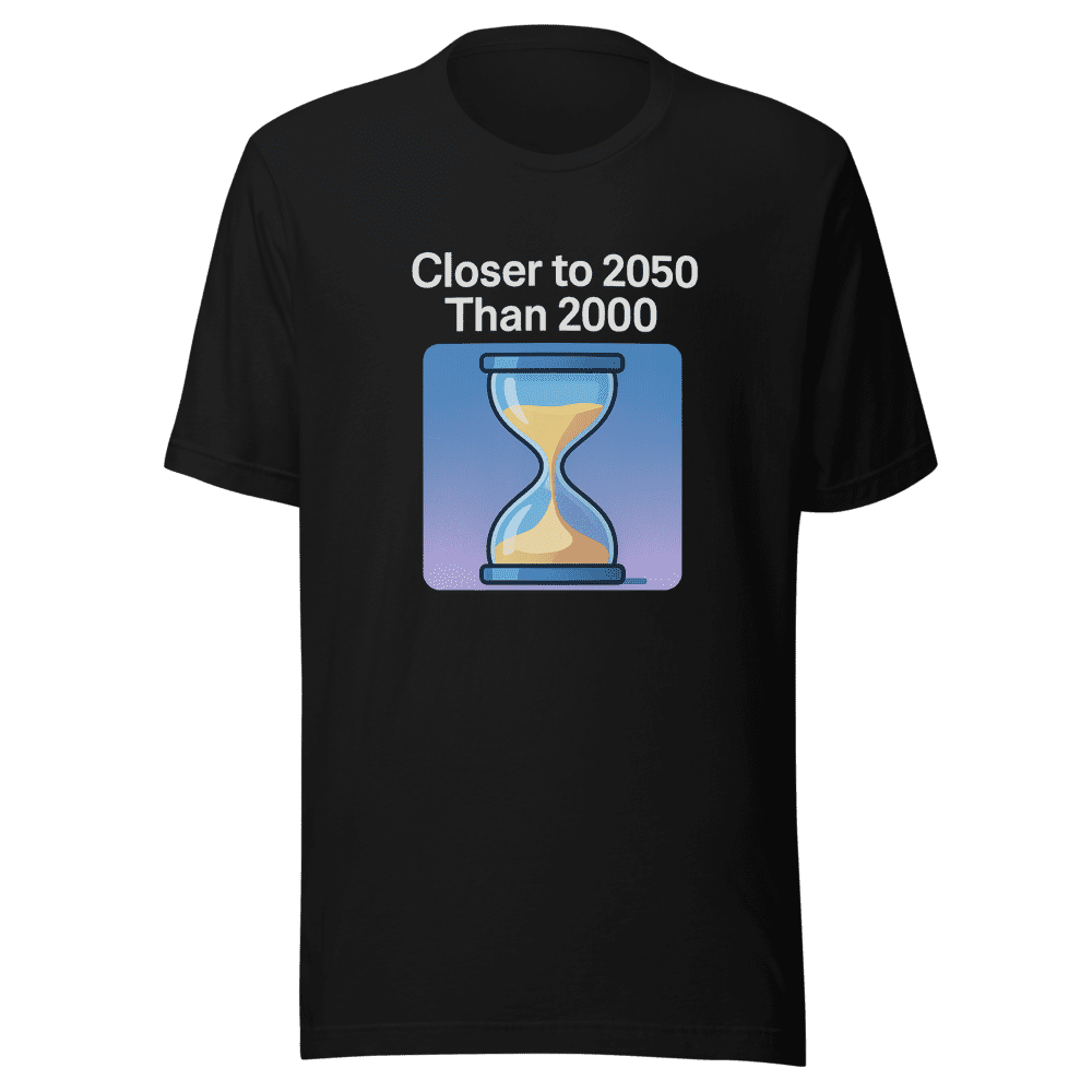 Time flies! This Closer to 2050 Than 2000 Tee perfectly captures that mind-blowing feeling. Become part of the viral sensation that had everyone on social media talking about the passage of time. This tee is a nostalgic, yet forward-looking, statement piece that sparks conversation and connects generations. It’s more than just a shirt; it’s a wearable moment of realization. Made with soft, breathable fabric, this tee offers all-day comfort. Available in sizes S, M, L, and XL. Easy to care for with normal wash instructions. Don’t miss out on owning a piece of internet history! Add this must-have tee to your wardrobe today and share the moment. Grab yours now before time really does fly by!