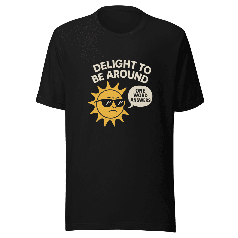 Feeling zesty one minute and like a grumpy cloud the next? You’re not alone! This Delight to be Around Mood T-Shirt perfectly captures those days when your inner sunshine takes a vacation. Inspired by the viral tweet that resonated with thousands, this tee is a hilarious nod to the struggle of maintaining peak social delightfulness. Rock this tee and let the world know you’re embracing all your moods, even the one-word-answer kind. It’s a conversation starter, a mood ring for your soul, and a comfy way to say, I’m human. Made from soft, breathable cotton, this tee is perfect for lounging at home, hitting up your favorite cafe, or just spreading some relatable realness wherever you go. Sizes available are S,M,L & XL. Wash instructions are normal. Grab yours now and join the mood-positive movement! Quantities are limited, so don’t miss out on owning this viral sensation!