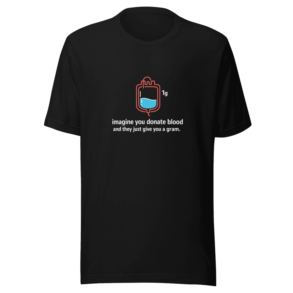 Join the Viral Sensation Sweeping Social Media! Our exclusive ‘Imagine You Donate Blood and They Just Give You a Gram’ t-shirt is the absolute must-have for anyone plugged into internet culture and modern humor. This hilarious viral meme has captivated millions across TikTok, Twitter, and Instagram, sparking endless laughs and relatable nods about societal absurdities. Now you can wear this iconic punchline and showcase your witty, cynical side with pride. This isn’t just a t-shirt; it’s a statement, a conversation starter, and your ticket to instant meme legend status among your friends. Crafted from premium, ultra-soft cotton, this tee offers superior comfort for all-day wear, whether you’re chilling at home, hitting up a concert, or creating your next viral video. Its durable, high-quality print ensures the sharp, eye-catching design remains vibrant wash after wash, maintaining its impact and humor. Available in popular sizes S, M, L, and XL, we’ve got the perfect fit for every meme enthusiast. To keep your viral tee looking fresh, simply machine wash cold with like colors and tumble dry low. Do not bleach or iron the design area. Don’t miss out on owning a piece of internet history! This design is flying off the shelves as fast as it’s trending online. Grab your ‘Imagine You Donate Blood and They Just Give You a Gram’ tee today and instantly elevate your wardrobe with a touch of viral genius before it sells out completely!