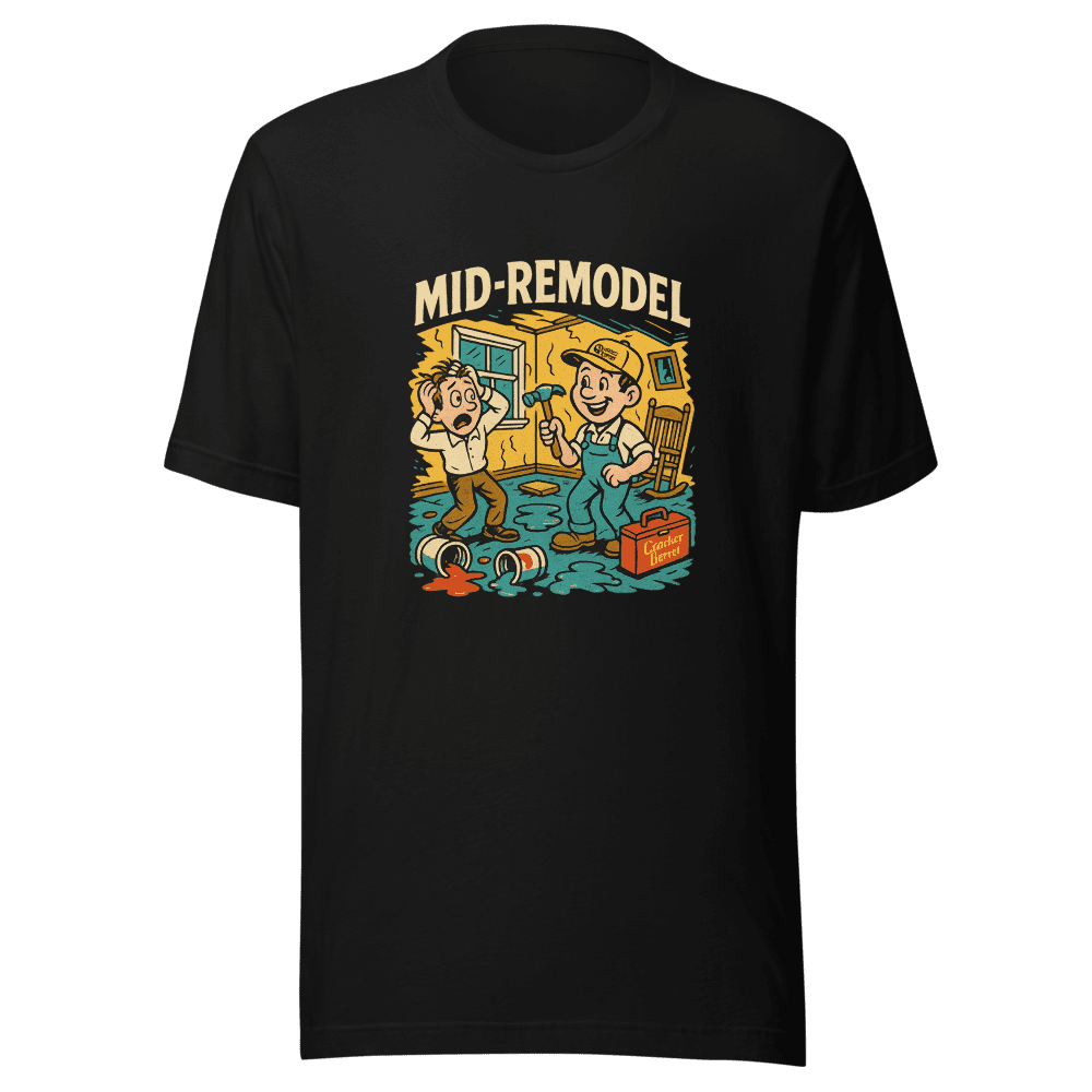 & Free ShippingEmbrace the chaos with this viral Cracker Barrel remodel disaster t-shirt! Perfect for anyone who has experienced a home renovation gone wrong. Get yours now!