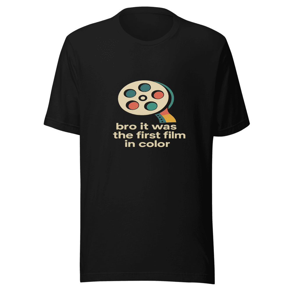 You won’t believe this! Jump on the viral trend with our First Film in Color T-Shirt. This tee is inspired by the tweet that blew everyone’s mind. Everyone is talking about the moment they realized the first film was in color, and now you can wear that revelation! The design captures that mind-blown feeling with a vintage-inspired aesthetic. Made from comfortable, breathable fabric, this t-shirt is perfect for everyday wear. Show off your knowledge and sense of humor. Don’t miss out on this trending piece! Available in sizes S, M, L, and XL. Wash instructions are normal. Get yours now before they’re gone!