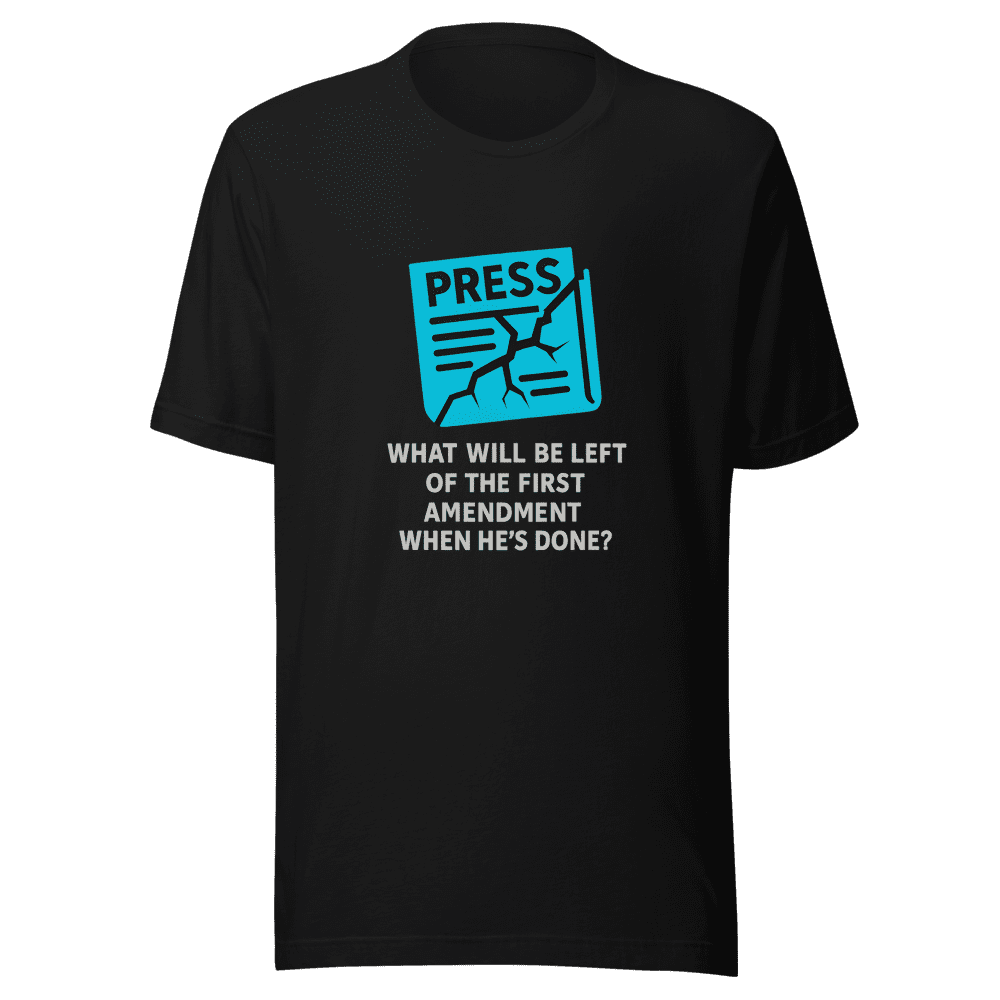 Don’t let the First Amendment disappear! This tee captures a viral tweet highlighting critical concerns about attacks on the free press. Own a piece of internet history with this statement shirt that’s sparking conversations everywhere. Join the movement and show your support for a free and open press. This isn’t just a shirt; it’s a stand against censorship. Get yours now before it’s too late and be part of the viral conversation. This comfortable and stylish tee is perfect for expressing your views. Available in sizes S, M, L, and XL. Normal wash instructions apply. Make a statement and grab yours today! Be part of something bigger and show your support. Get your tee now and let your voice be heard. This is more than apparel; it’s a symbol of freedom.