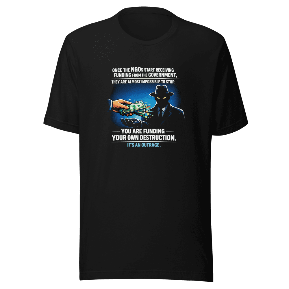 Stop the Madness: Are You Funding Your Own Destruction? This outrageously viral tweet is now immortalized on a must-have tee! Join the movement and make a statement. Don’t be part of the problem, be part of the solution. This shirt isn’t just apparel; it’s a conversation starter, a symbol of awareness, and a middle finger to the system. Get yours now before they’re gone! Everyone’s talking about it – be in the know. Perfect for those who are politically engaged, question authority, and aren’t afraid to speak their minds. Premium quality fabric ensures maximum comfort and durability. Available in sizes S, M, L, and XL. Normal wash instructions apply. Get yours before it’s too late – limited stock available. Speak truth to power.