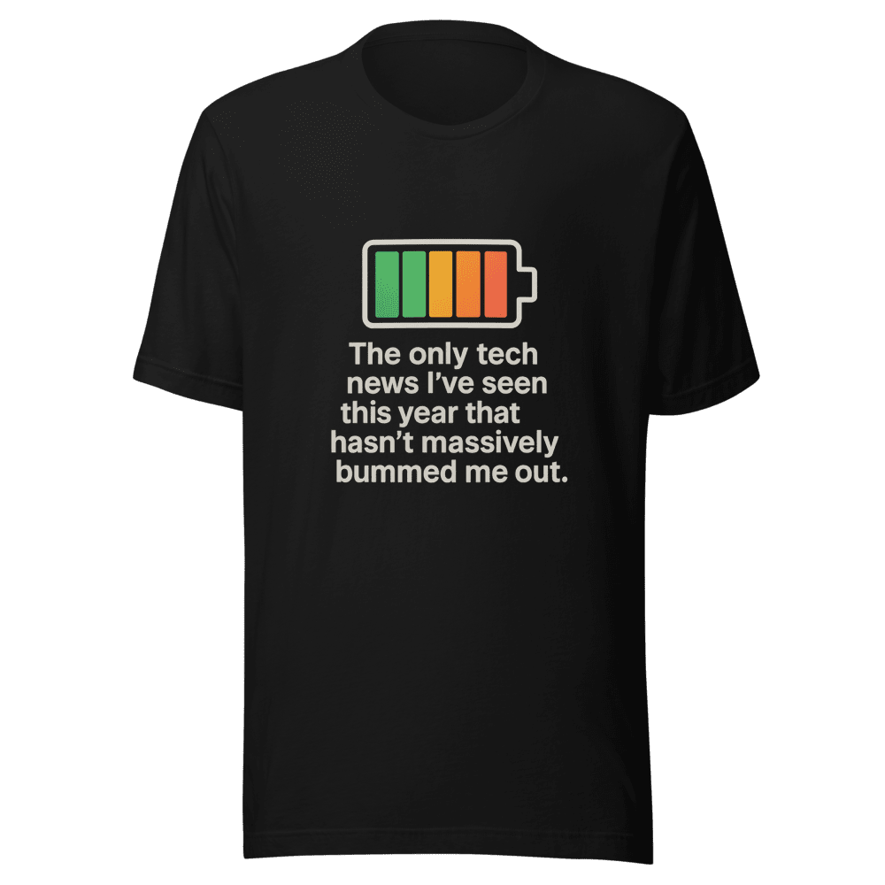 Finally, a shirt that speaks your mind! Tired of the endless stream of bummer tech news? This tee perfectly captures that sentiment. This design is trending and has gone viral, resonating with tech enthusiasts everywhere. Be part of the movement craving positive innovation. This comfortable and stylish tee is perfect for expressing your tech optimism. Features a high-quality print on a soft, breathable fabric. Show the world you’re ready for some good tech news! Sizes are S,M,L & XL. Wash instructions are normal. Get yours now before the next wave of tech doom!