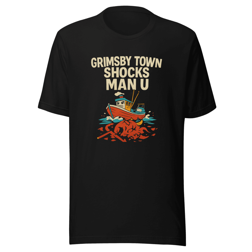 Witness the unbelievable upset with this Grimsby Town Shocks Man U T-Shirt! This design captures the historic moment a 4th division team eliminated Man United from the Carabao Cup, a feat that sent shockwaves through the soccer world and went viral online. Own a piece of sports history and show your love for the underdog. This tee isn’t just clothing; it’s a conversation starter, a badge of honor for true football fans who appreciate the beautiful game’s unpredictable nature. Get yours now before they’re all gone – this is a limited-edition item commemorating an unforgettable moment. Available in sizes S, M, L, and XL. Normal wash instructions. Grab this viral tee and celebrate the magic of the underdog!