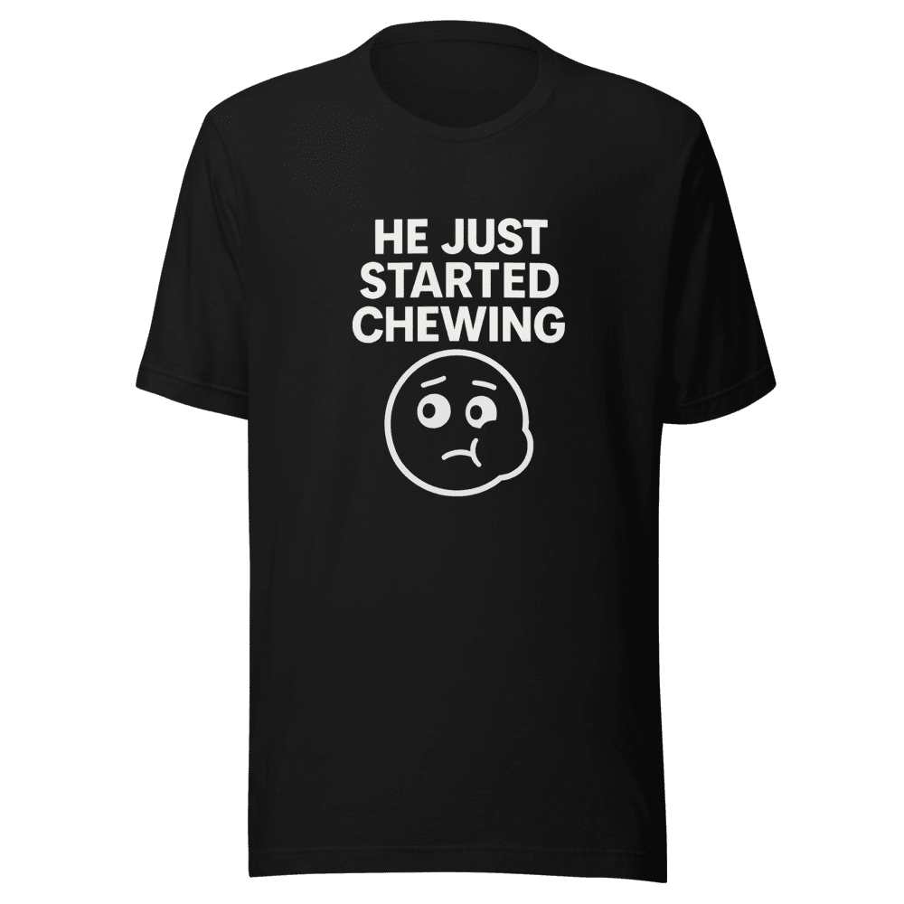You won’t believe what everyone is talking about! This He Just Started Chewing T-Shirt is taking over the internet. Inspired by the viral tweet that had everyone questioning reality, this tee perfectly captures the confusion and humor we all experience. Be part of the trend and let the world know you’re in on the joke! Made from soft, comfortable cotton, this t-shirt is perfect for everyday wear. It features a bold design that’s sure to turn heads and spark conversations. Get yours now before they’re all gone! Show off your internet savvy and grab this limited-edition tee today. Sizes are S,M,L & XL. Wash instructions are normal. Don’t miss out on the chance to own a piece of internet history. Order now and join the viral sensation!