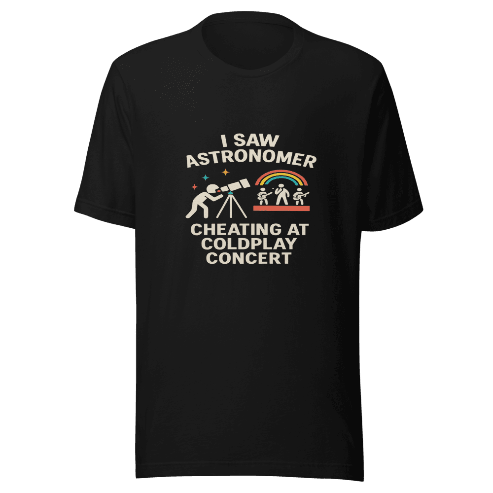 Hottest tee of the year! This I Saw Astronomer Cheating at Coldplay Concert Tee is going viral. The internet is buzzing about the Astronomer CEO Andy Byron and Kristin Cabot drama at a recent Coldplay concert and now you can wear the meme. Be part of the trend. This comfy tee is a must-have for anyone who loves drama, memes, and iconic moments. Soft, breathable fabric ensures all-day comfort. Get yours before they are gone! Available in sizes S, M, L, and XL. Normal wash instructions. Show off your internet savvy – grab this limited-edition tee now before it disappears!