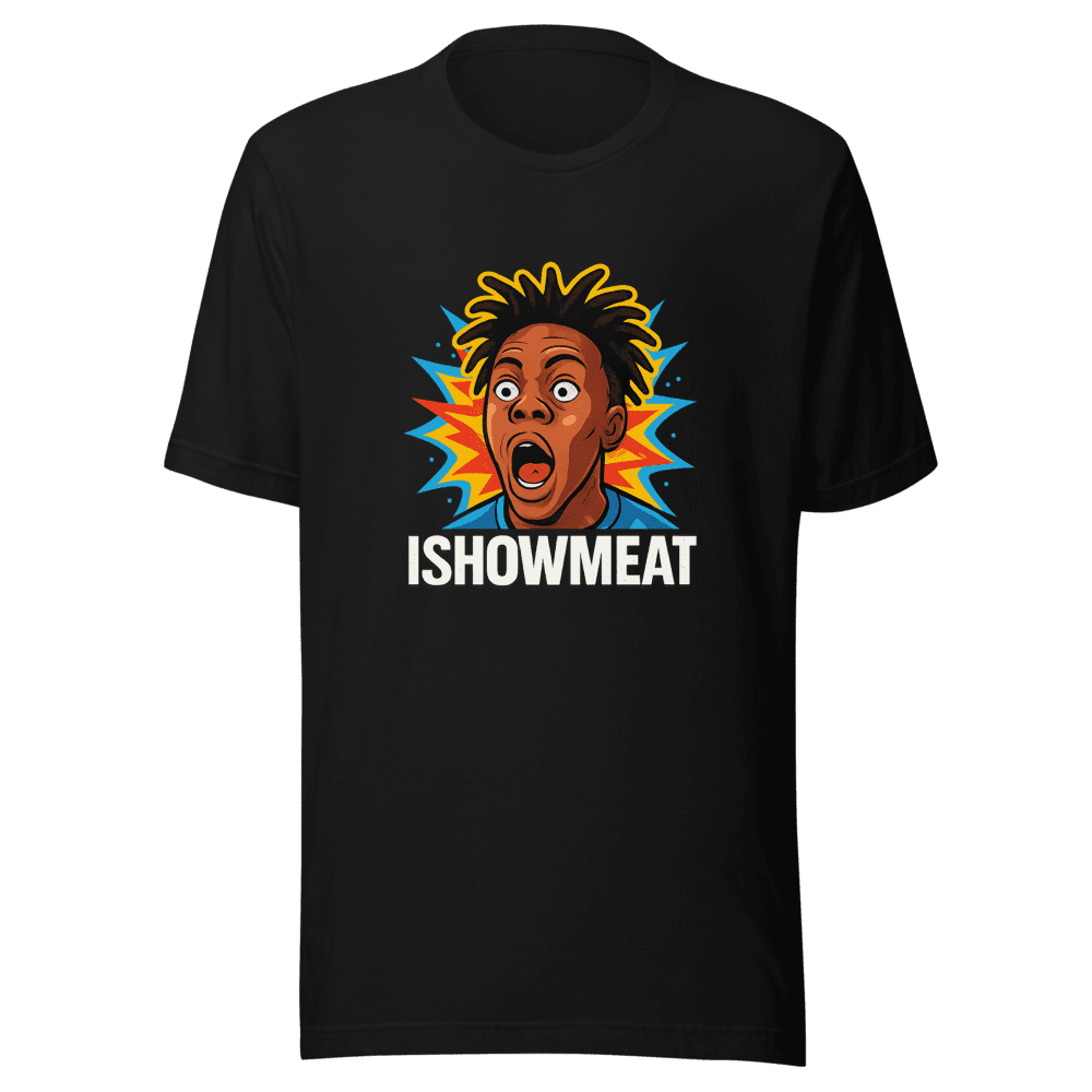 Don’t miss out on the internet’s latest obsession! This IShowSpeed IShowMeat tee is blowing up online and you need to grab yours before they’re gone. Inspired by the viral moment that took the internet by storm, this tee is a must-have for any true meme connoisseur. Show off your sense of humor and stay ahead of the trends with this iconic piece of internet history. Made from comfortable, high-quality materials, this tee is perfect for everyday wear. Sizes are S, M, L & XL. Wash instructions are normal. Join the viral sensation and add this IShowSpeed IShowMeat tee to your wardrobe today! Limited stock available, so act fast!