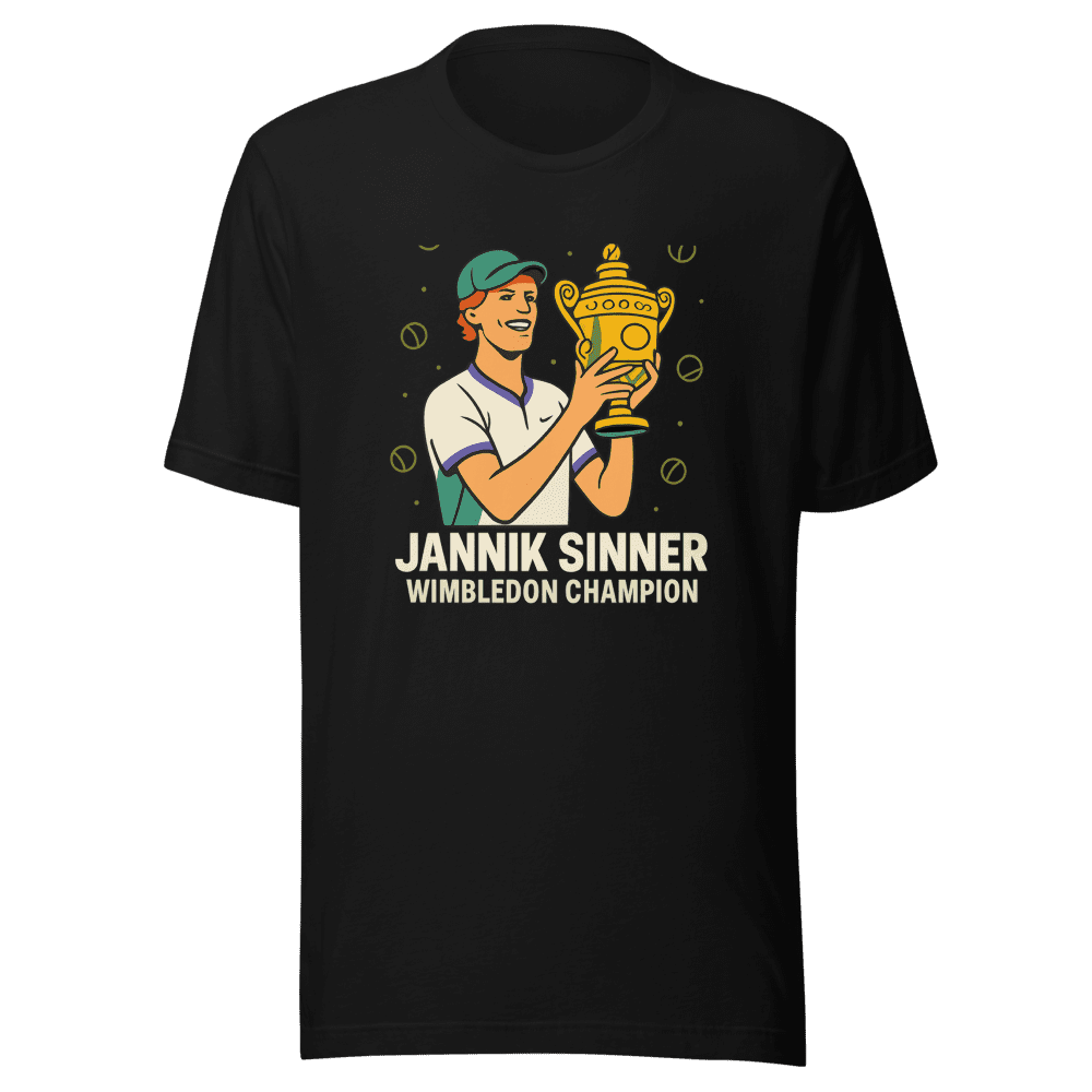 Score this limited-edition Jannik Sinner Wimbledon Champion T-Shirt before it sells out! This design celebrates Jannik Sinner’s incredible Wimbledon victory, inspired by Carlos Alcaraz’s viral tweet. Join the hype – everyone’s talking about it! Show your love for tennis and wear your support for a true champion. Made from comfortable, high-quality fabric, this tee is perfect for hitting the court, hanging out with friends, or cheering from the stands. It’s a must-have for any tennis fan. Get yours now and be part of the winning team! Available in sizes S, M, L, and XL. Easy care: normal wash instructions. Don’t miss out – grab this iconic tee today! This collector’s item is sure to become a favorite in your wardrobe. Order now and celebrate the spirit of Wimbledon!