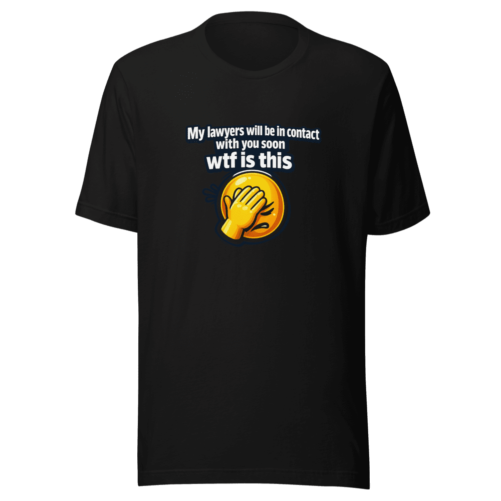 Act Fast: This Hilarious Viral Tee Is Selling Out! Get ready to turn heads and spark conversations with the internet’s latest obsession: the ‘My lawyers will be in contact with you soon wtf is this 😂🤦🏾♂️’ T-Shirt. This iconic phrase perfectly captures those moments of absolute disbelief, exasperation, and uncontrollable laughter that we all experience daily, making it the ultimate wearable meme for anyone who appreciates a good dose of ironic humor. Join thousands who are already rocking the ‘Lawyers in Contact’ vibe across TikTok and Instagram. This isn’t just a t-shirt; it’s a statement that’s taken social media by storm, becoming an instant favorite for its relatable, laugh-out-loud humor. Crafted from a premium, soft cotton blend, this tee offers supreme comfort for all-day wear, whether you’re chilling at home, hanging out with friends, or making a bold statement out in the world. Its high-quality print ensures the vibrant design stays fresh, wash after wash, so you can keep sharing your viral humor for months to come. Available in sizes Small, Medium, Large, and Extra Large, finding your perfect fit is easy. To keep your tee looking its best, simply machine wash cold with like colors, tumble dry low, and avoid bleaching or ironing directly on the design. Don’t miss out on owning a piece of internet history that speaks volumes without saying a word. This limited-edition viral sensation is flying off the shelves. Grab yours before it’s gone and let your shirt do the talking, showcasing your witty personality and impeccable meme taste to the world!
