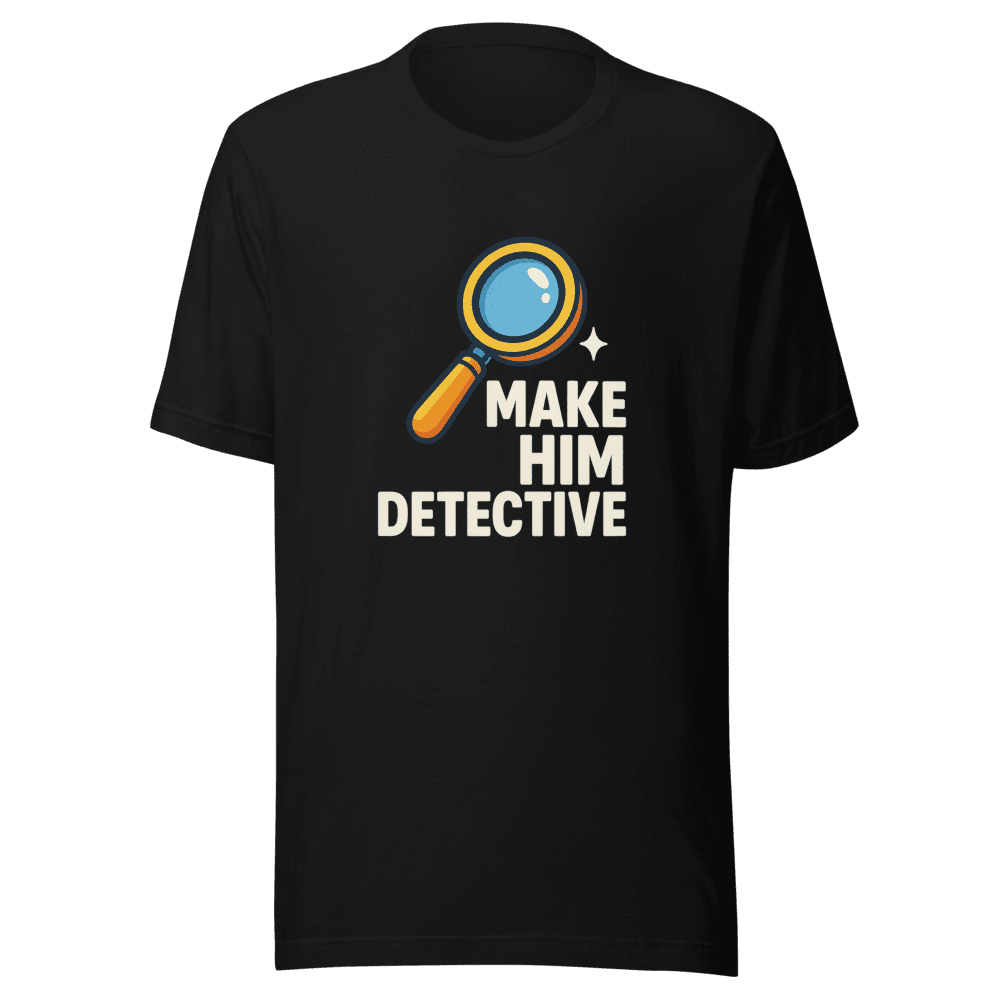 Time to make a statement with the internet’s latest obsession! This Make Him Detective T-shirt is blowing up online, and you need to be a part of the viral sensation. If you’ve been online at all, you know this phrase is everywhere. Now, wear the meme, embody the humor, and let everyone know you’re in the know. This tee isn’t just clothing; it’s a conversation starter, a symbol of internet culture, and a badge of honor for those who understand the reference. Don’t get left behind as this trend takes over. This is your chance to own a piece of internet history! Made from soft, breathable fabric for all-day comfort. Available in sizes S, M, L, and XL. Machine wash normal. Grab yours now before they’re all gone!