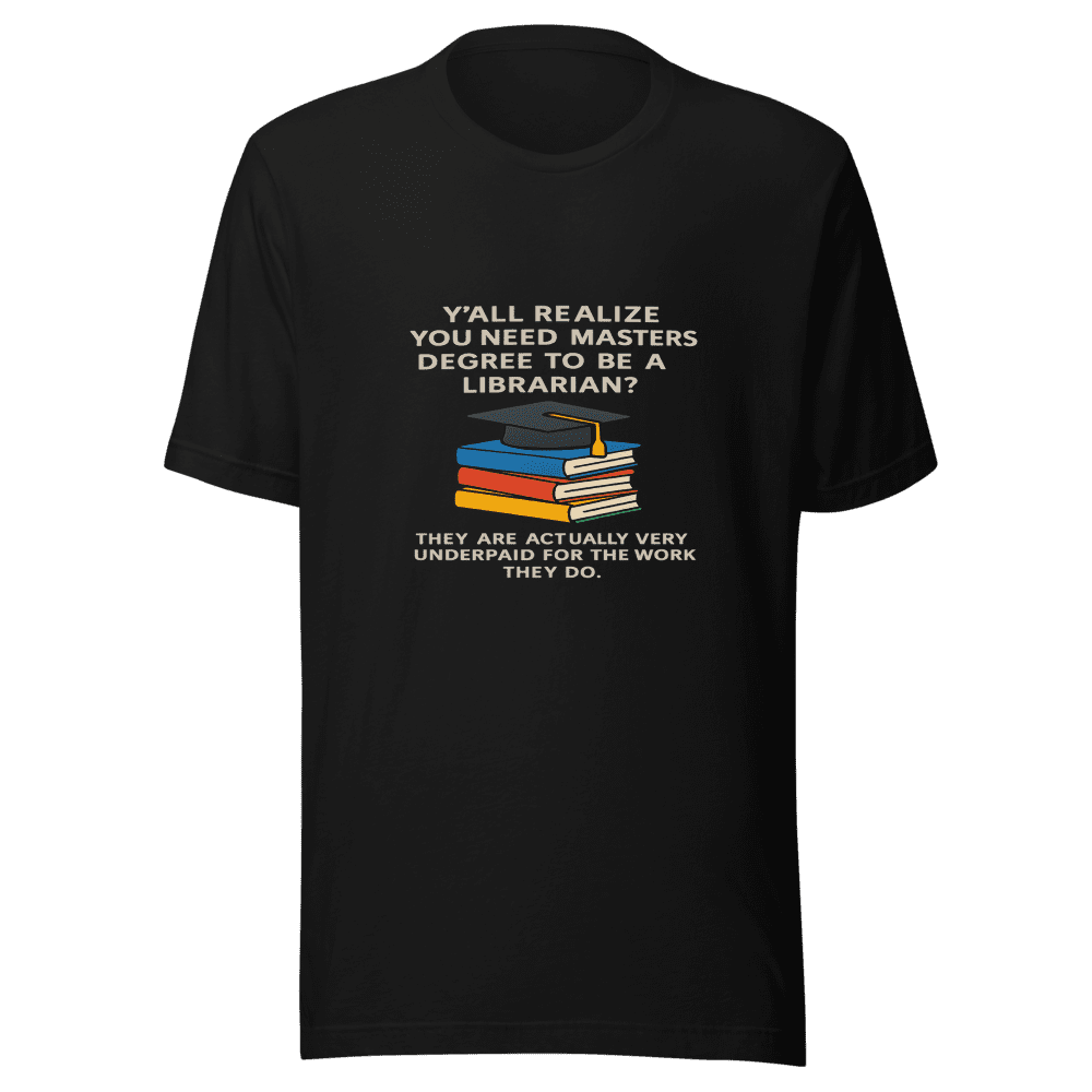 Level Up Your Look: Librarian Edition! You’ve seen the tweet, now wear the truth! This t-shirt speaks volumes: being a librarian isn’t just about shelving books, it’s advanced knowledge for a ridiculously low paycheck. Show your support for these unsung heroes and spark conversations with this must-have tee. Join the viral movement and let everyone know librarians deserve better. Made from super-soft cotton, this tee is perfect for everyday wear, library visits, or protesting unfair wages (just kidding… unless?). Get yours now before everyone else does! Sizes available: S, M, L, XL. Wash instructions: normal. Add this statement piece to your cart now!