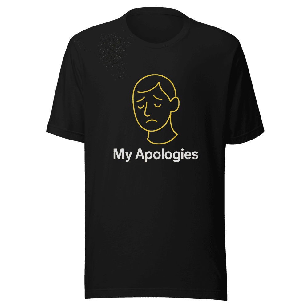 Jump on the viral trend with this My Apologies T-shirt a total social media hit. This tee captures a relatable mood that’s sweeping the internet. Everyone is sharing this quote. Be part of the movement and show off your sense of humor with this must-have shirt. Made from soft breathable fabric this tee is perfect for everyday wear. It’s a comfortable way to express yourself and connect with the online community. This T-shirt is more than just clothing its a conversation starter. Show the world you are in on the joke and embrace the viral sensation. Get yours now and join the fun. Sizes available: S, M, L, XL. Wash Instructions: Normal. Don’t miss out on this trending piece. Add it to your cart today.
