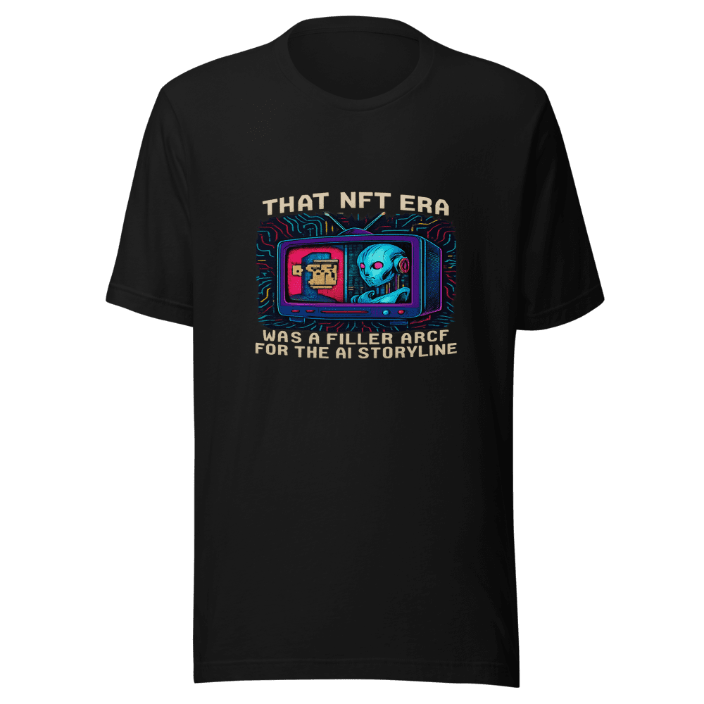 Level up your drip with the NFT AI Filler Arc Tee! This shirt immortalizes the viral tweet that’s been blowing up timelines everywhere. You know the one: That NFT era was a filler arc for the ai storyline – pure genius, right? Get ready to spark conversations and rep the ultimate meme commentary on tech’s evolution. This tee isn’t just clothing; it’s a statement. Crafted from premium cotton for all-day comfort, it’s a must-have for anyone plugged into the digital zeitgeist. Available in sizes S, M, L, and XL. Wash instructions are normal. Don’t get left behind – grab yours now and show the world you’re in the know! Limited stock available, so don’t miss out on owning a piece of internet history.