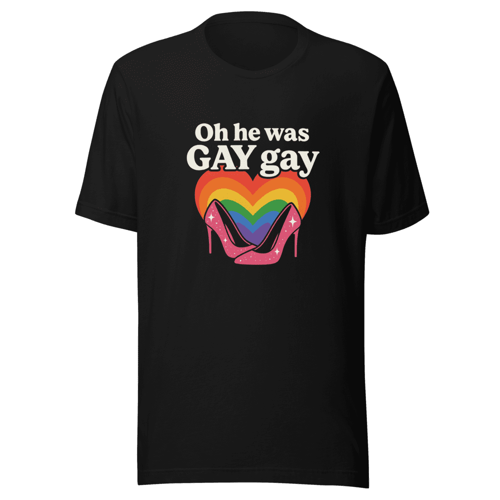 Get ready to slay with this viral sensation tee! The oh he was GAY gay t-shirt is taking over your feed and now you can wear the meme. This hilarious and relatable design is perfect for showing off your pride and adding a touch of humor to your wardrobe. Be part of the trend and let everyone know you’re in on the joke. This tee is a must-have for anyone who loves LGBTQ+ culture and wants to make a statement. Made with soft, breathable fabric, this t-shirt is comfortable enough to wear all day long. Available in sizes S, M, L, and XL. Wash instructions are normal. Don’t miss out – grab your oh he was GAY gay tee now and let the world know you’re fabulous!