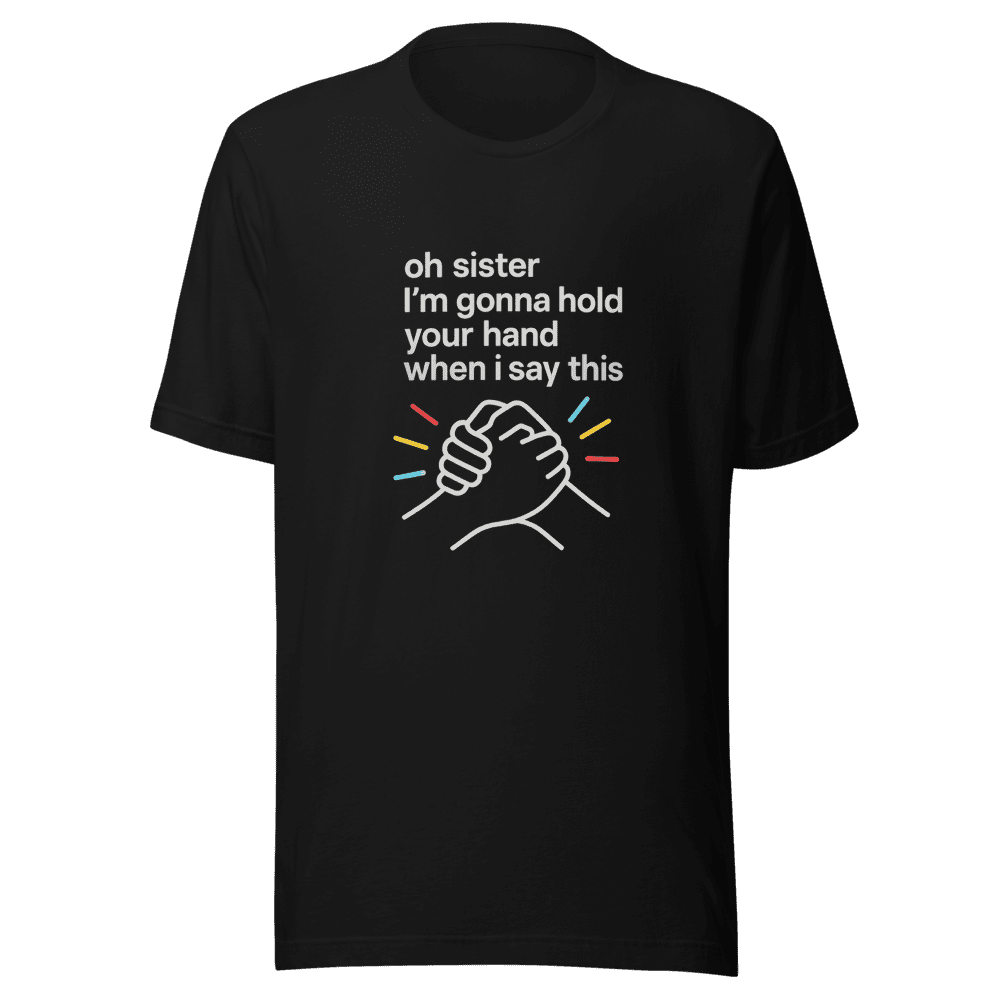 Jump on this viral trend! This Oh Sister Hand Holding T-Shirt is blowing up online, and you don’t want to miss out. Inspired by the now iconic tweet, this tee lets everyone know you’re in on the joke and ready to show support. Be part of the online movement and wear your heart on your sleeve, literally! This comfortable and stylish t-shirt is perfect for expressing yourself and connecting with others who share your sense of humor. Grab yours now before they’re all gone! Sizes are S, M, L & XL. Normal wash instructions. Add this must-have piece to your wardrobe today and show the world you’re always in the know!