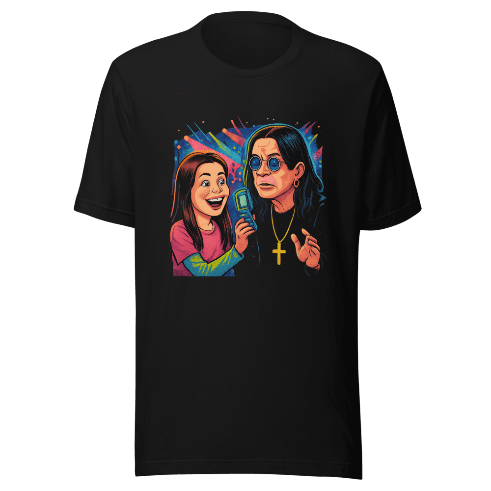 Relive the iconic moment! This Ozzy Osbourne selfie request throwback tee is going viral! Remember when Miranda Cosgrove asked Ozzy for a selfie back in 2003? This tee captures that hilarious, unforgettable pop culture collision. Be part of the viral trend! A must-have for any 2000s kid. Join thousands of others who are flashing back with this tee. Don’t miss out order yours today! Size are S,M,L & XL. Wash instructions are normal. Get yours now before they are gone!