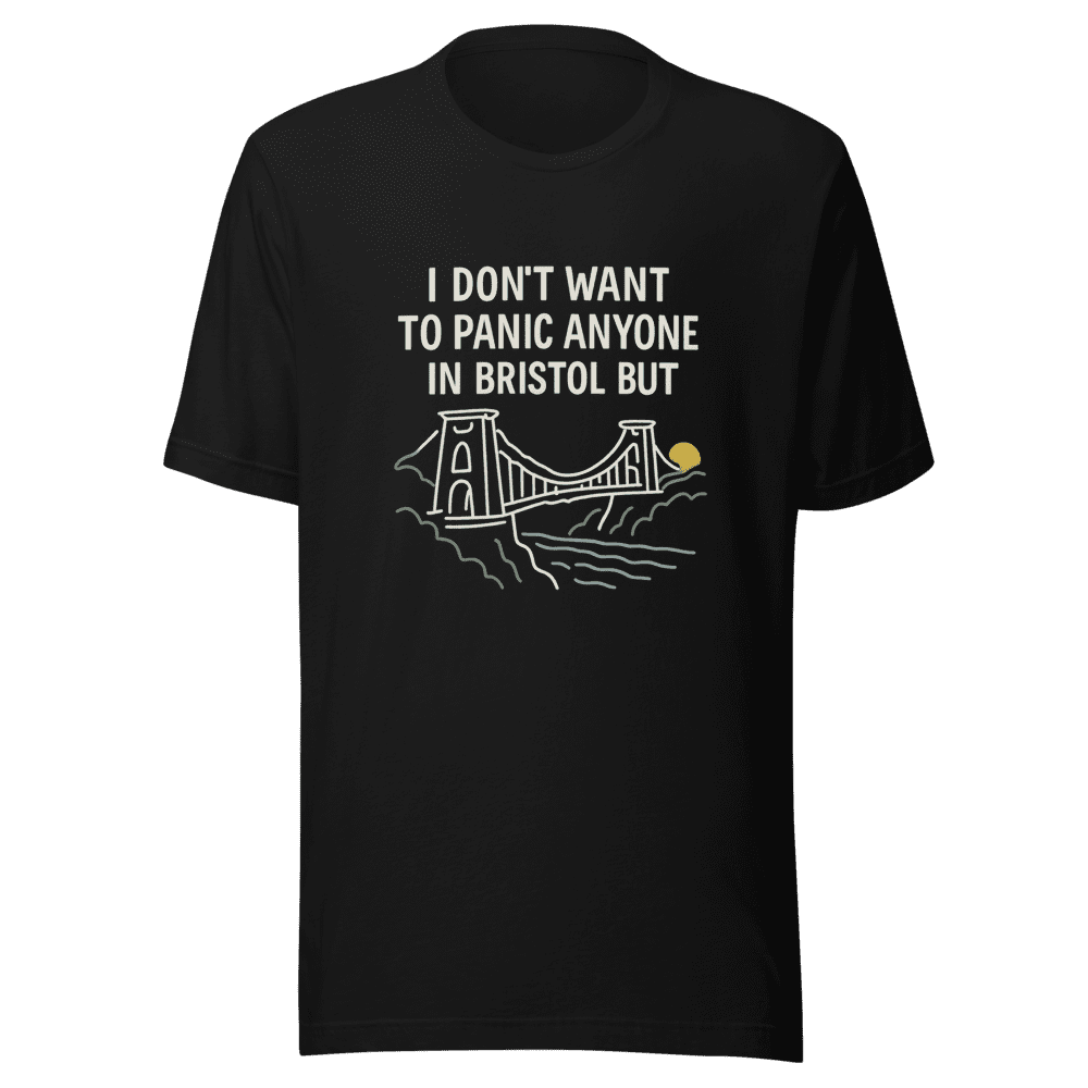 Don’t Panic! Bristol is Calling T-Shirt. This tee is going viral! Seen everywhere, this shirt captures the frantic energy of that now-famous tweet that had everyone talking. Be part of the moment with this must-have piece. Perfect for anyone who loves internet culture, witty humor, or just wants to show off their Bristol pride (or mild anxiety!). Get yours before they’re all gone! This comfortable and stylish tee is made from high-quality materials, ensuring a perfect fit and lasting wear. Features a classic crew neck and short sleeves. Sizes are S,M,L & XL. Wash instructions are normal. Order now and join the viral sensation!