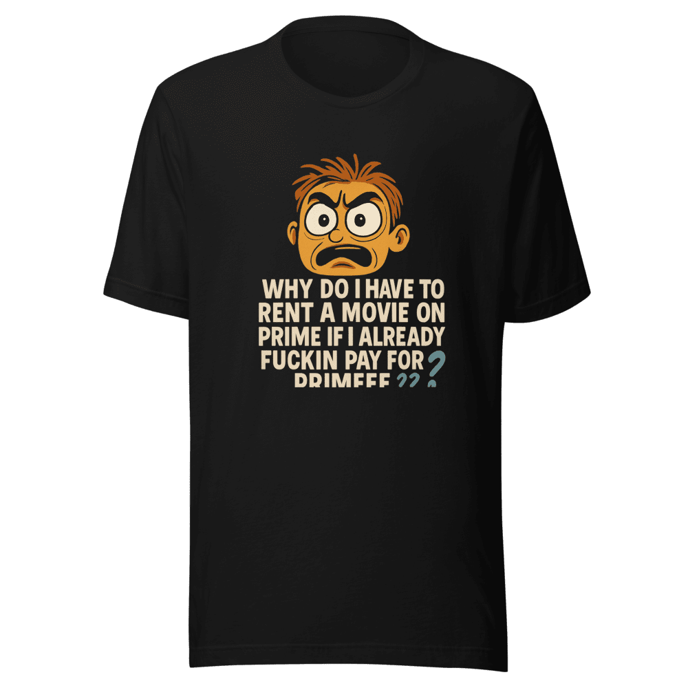 Stop the scroll! This Pay for Prime Movie Rental Viral Tweet T-Shirt is blowing up. You are not alone if you feel this! Own the frustration and rock the statement that everyone is talking about. Join the movement of streamers who demand more. This tee isn’t just clothing; it’s a conversation starter, a mood, and a badge of honor for the streaming generation. Made with super-soft material for ultimate comfort, it’s perfect for binge-watching or hitting the streets. Available in sizes S, M, L & XL. Normal wash instructions. Grab yours now before they’re gone and show the world you’re in on the joke! This shirt is a must-have and it will sell out fast!