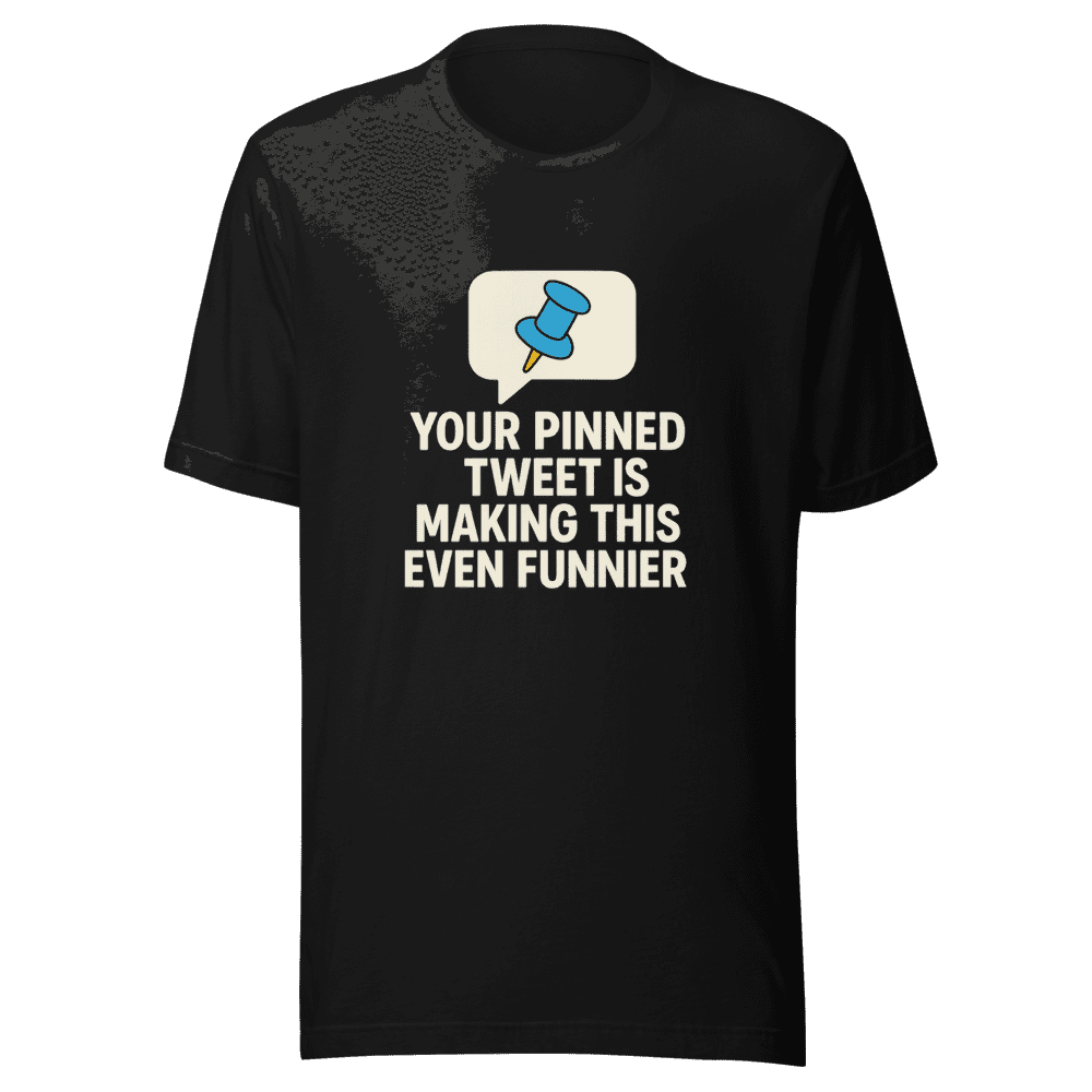 This Pinned Tweet Funnier Now T-Shirt is going viral! Seen all over Twitter, this design perfectly captures that oh-so-relatable feeling when your pinned tweet becomes unintentionally hilarious. Don’t miss out on this trending piece of internet culture! Grab yours now before everyone else does. Representing the best of meme humor, this tee is sure to spark conversations and turn heads. Made from comfortable, high-quality fabric, it’s perfect for everyday wear. Show off your online savvy and stay ahead of the trends. Available in sizes S, M, L, and XL. Wash instructions are normal. Get your Pinned Tweet Funnier Now T-Shirt today and join the meme revolution!