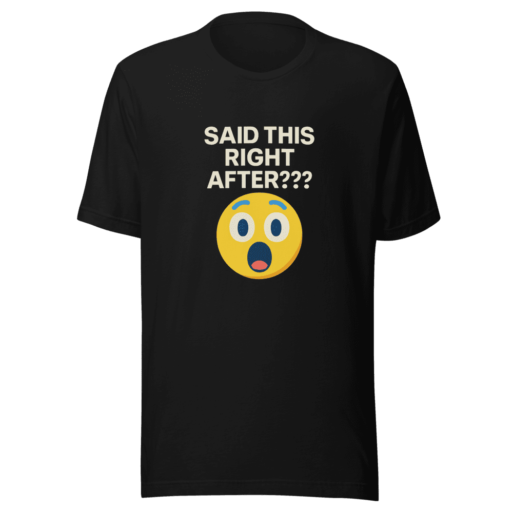 Get ready to laugh with this Said This Right After T-shirt! This design captures the iconic viral tweet that’s been blowing up timelines everywhere. You know the feeling when someone says something totally contradictory? This shirt perfectly embodies that hilarious moment of disbelief. Join the trend and show off your internet savvy with this must-have tee. Comfortable and stylish, this shirt is perfect for everyday wear, meme meetups, or just chilling with friends. Be the first to rock this trending design and watch the likes roll in! Available in sizes S, M, L, and XL. Wash instructions are normal. Don’t miss out – grab yours now and become part of the viral sensation!