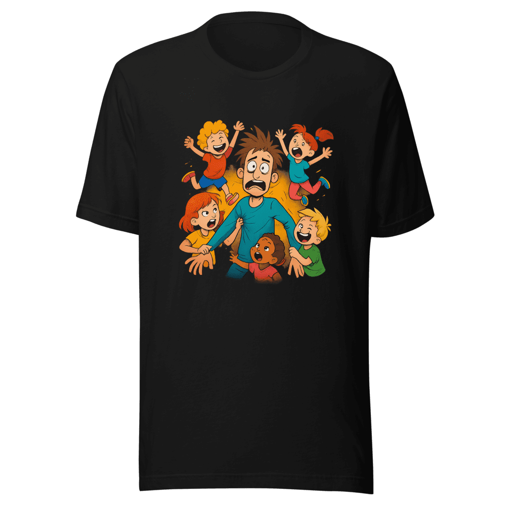 Survive the day with this hilarious tee! This design captures the feeling every parent, teacher, and caregiver knows all too well. Seen everywhere and going viral, this shirt perfectly expresses the joys and challenges of spending hours with kids. Show off your sense of humor and let everyone know you understand the struggle is real. Comfortable and stylish, this t-shirt is perfect for everyday wear, school events, or just lounging at home after a long day. This tee is a conversation starter and a must-have for anyone who’s ever spent a long day surrounded by children. Get yours now before they’re all gone! This t-shirt comes in sizes S, M, L, and XL. Normal wash instructions apply.