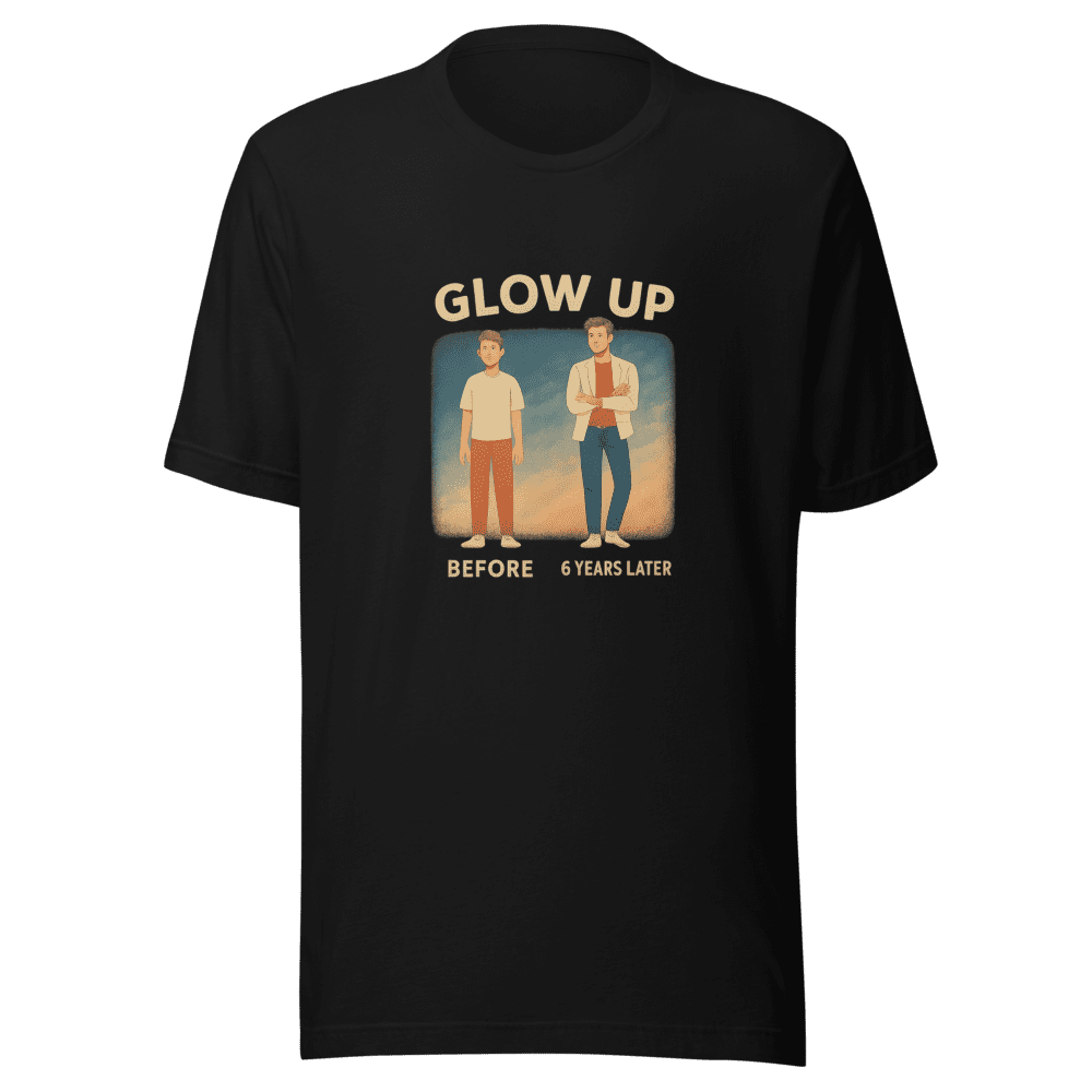 Jump on the trend with this amazing Six Year Glow Up tee! Inspired by a viral social media moment, this design celebrates personal growth and transformation. Everyone loves a glow-up story, and this shirt captures that feeling perfectly. Be part of the internet phenomenon and show off your own glow-up journey or admiration for others. This tee is super comfortable and made with high-quality materials that will last. It’s perfect for everyday wear, casual outings, or just relaxing at home. Available in sizes S, M, L, and XL. Wash instructions are normal. Don’t miss out on this must-have tee that everyone is talking about. Grab yours now and share the glow-up vibes! This tee is a total conversation starter and an awesome way to connect with others who appreciate a good transformation story. Get yours before they’re all gone!