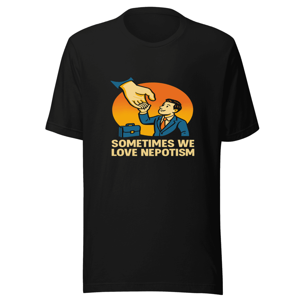 Hype Alert: This Sometimes We Love Nepotism tee is taking over your feed! Jump on the trend with the shirt everyone’s talking about – seen all over socials and racking up the likes! This tee isn’t just a statement, it’s a whole mood. Rock the ironic vibes and show you get the game. Soft, breathable fabric keeps you comfy while you’re turning heads. Whether you’re hitting the streets or chilling with friends, this tee’s got you covered. Sizes S, M, L & XL are available. Easy wash instructions make it low maintenance and look great wash after wash. Add to cart now – this viral sensation won’t stay in stock for long!