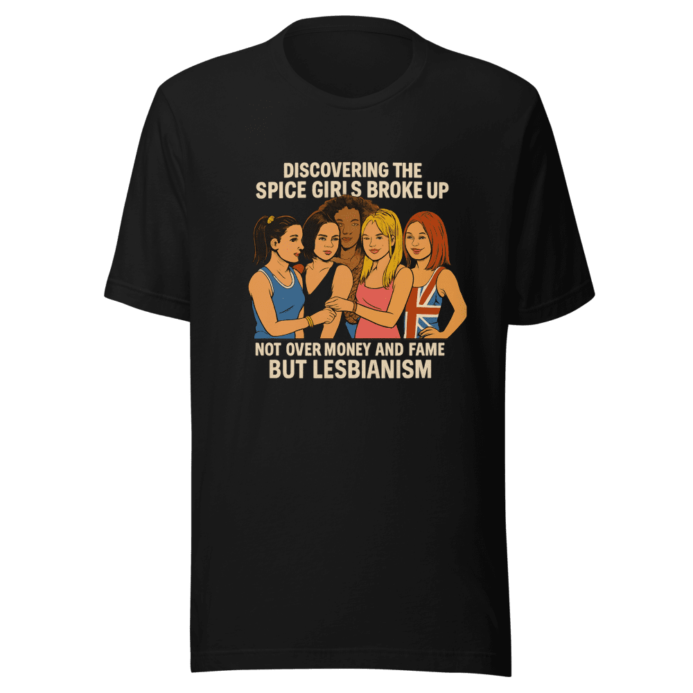 Spice Up Your Wardrobe! This viral tweet is taking the internet by storm! Everyone’s talking about the real reason the Spice Girls broke up, and now you can wear the conspiracy theory! This tee is a must-have for any Spice Girls fan with a sense of humor. Get yours before they’re gone! Show off your love for 90s pop culture and hilarious internet theories. Available in sizes S, M, L, and XL. Easy wash instructions. Don’t miss out on this iconic piece of internet history. Grab yours today and join the fun! Get this Spice Girls tee now because everyone is talking about it.