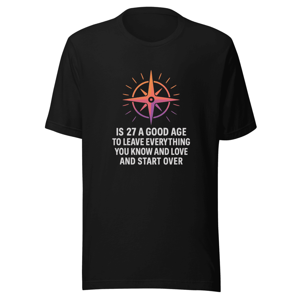 Feeling that itch to break free? This Start Over T-Shirt captures the viral tweet sensation: is 27 a good age to leave everything you know and love and start over? A question that’s resonated with thousands, sparking a movement of reinvention and self-discovery. If you’re ready to embrace a new chapter, this tee is your badge of courage. It’s more than just clothing; it’s a conversation starter, a symbol of your bold spirit, and a reminder that it’s never too late to chase your dreams. Join the viral trend and show the world you’re not afraid to start again! This comfortable, stylish tee is perfect for everyday wear, whether you’re exploring new cities or simply redefining yourself at home. Sizes are S, M, L, & XL. Wash instructions are normal. Don’t wait, your new beginning starts now! Get yours today and ignite your journey!