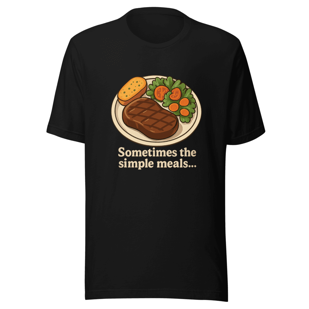 {‘This viral design gets me stopped everywhere!’ – TikTok Customer 15+ people viewing this right now FREE Shipping Secure Checkout & 30-Day Returns LOW STOCK: Restocking in 2-3 weeks TIKTOK VIRAL EDITION – Selling Fast! Craving that perfect plate of comfort food? This t-shirt embodies the feeling of a juicy steak, fresh salad, and golden garlic toast all in one stylish design. It’s more than just a shirt; it’s a statement about your love for simple, delicious meals and good vibes. Premium 100% combed cotton for all-day comfort Crisp, vibrant design that won’t fade or crack True to size fit (S, M, L, XL) Machine washable, inside out recommended Unisex style perfect for any occasion Join thousands of TikTok users rocking this viral design! Limited quantities available – get yours before it’s gone! $29.99 with FREE SHIPPING. This is the must-have tee inspired by the viral TikTok sensation. Show the world your foodie side with this trendy, conversation-starting piece. Perfect for casual outings, foodie gatherings, or just lounging at home. Our premium materials ensure long-lasting comfort and style. True to size fit, so you can order with confidence. $29.99 with FREE SHIPPING. No hidden fees at checkout. We offer free delivery straight to your door. It is an all-in price – what you see is what you pay. Size are S,M,L & XL. Wash instructions are normal. Get yours today and let your love for good food shine! $29.99 with FREE SHIPPING – shipped free and includes free delivery.’}
