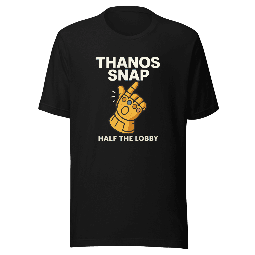 Get ready to dominate Marvel Rivals with this hilarious Thanos Snap tee! Inspired by the viral tweet that took the gaming community by storm, this shirt embodies the chaotic fun everyone wants in their ultimate ability. Imagine the thrill of randomly eliminating half the lobby – now you can wear that fantasy! Join the trend and show off your love for Marvel Rivals with this must-have shirt. Don’t miss out – grab yours before they vanish! This tee isn’t just about gaming; it’s about expressing your humor and staying ahead of the curve. Made with comfortable, high-quality fabric, this shirt is perfect for gaming sessions, meetups, or everyday wear. Sizes are S, M, L & XL. Wash instructions are normal. Level up your wardrobe and become a legend. Order now and let the games begin!