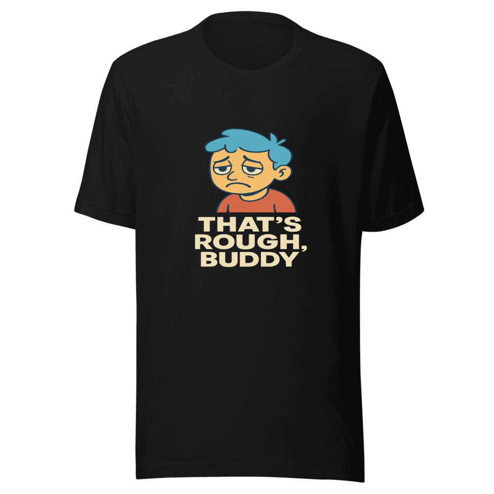 Jump on the viral sensation with this That’s Rough Buddy T-shirt! This shirt embodies the feeling when things just don’t go your way. Seen all over social media, this relatable quote has resonated with millions online. Be part of the trend and show off your sense of humor with this comfy and stylish tee. It’s the perfect conversation starter and a great way to connect with others who understand those moments when life throws you a curveball. This shirt is made from a soft, breathable fabric that feels great against your skin. Available in sizes S, M, L, and XL. Normal wash instructions. Don’t miss out – grab yours today and let the world know you get it! Perfect for gifting to friends, family, or treating yourself. Get yours now while supplies last!