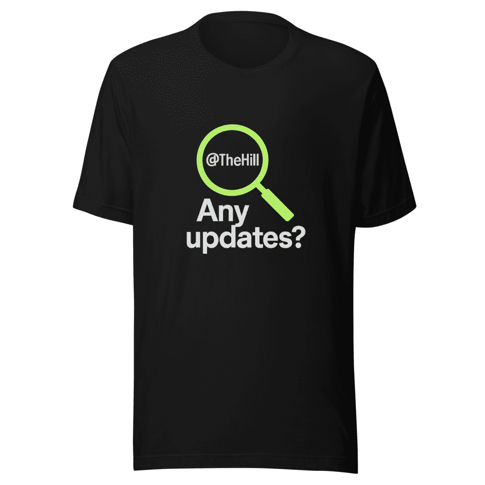 Demand Answers with the Viral The Hill Update T-Shirt! This tee embodies the urgency and social media buzz surrounding the viral tweet asking @thehill for a crucial update. Seen everywhere online, this shirt lets you join the conversation and show you’re in the know. Get yours now before the story breaks! Comfortable and stylish, this shirt features a unique design that captures the essence of the online moment. Be part of the movement demanding transparency and accountability. Available in sizes S, M, L, and XL. Easy to care for with normal wash instructions. Don’t miss out – grab yours today and stay informed!