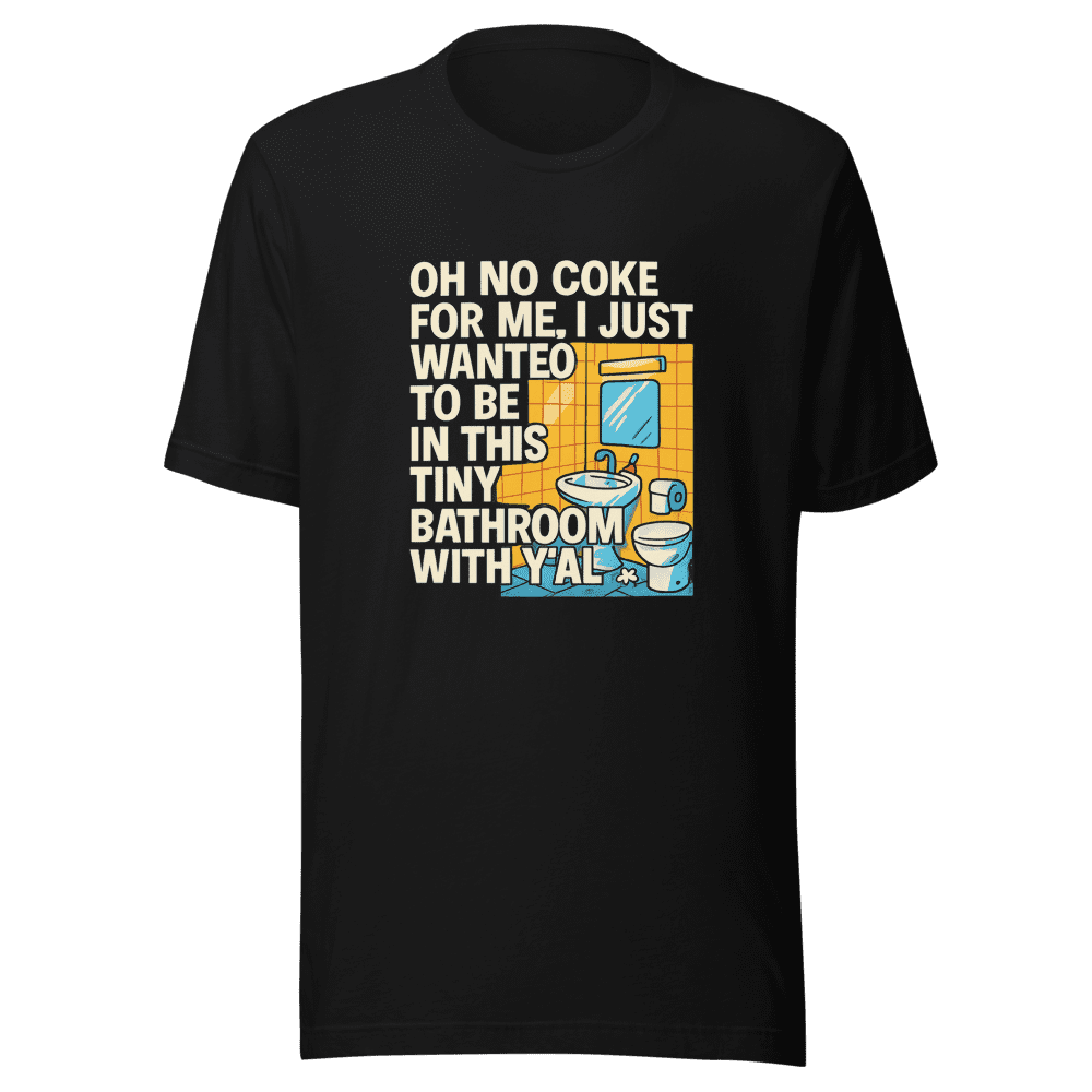 You saw it online, now wear it! Grab this hilarious Tiny Bathroom Coke Meme T-Shirt and show off your internet savvy. This tee is blowing up with viral status because everyone gets the joke. If you’ve ever found yourself crammed in a tiny bathroom with friends, this shirt is for you. The witty design is a surefire conversation starter and a must-have for meme lovers. Snag yours now before they’re all gone! Made from soft, breathable cotton, this t-shirt is as comfortable as it is funny. Available in sizes S, M, L, and XL. Wash instructions are normal. Get yours now and join the viral sensation!