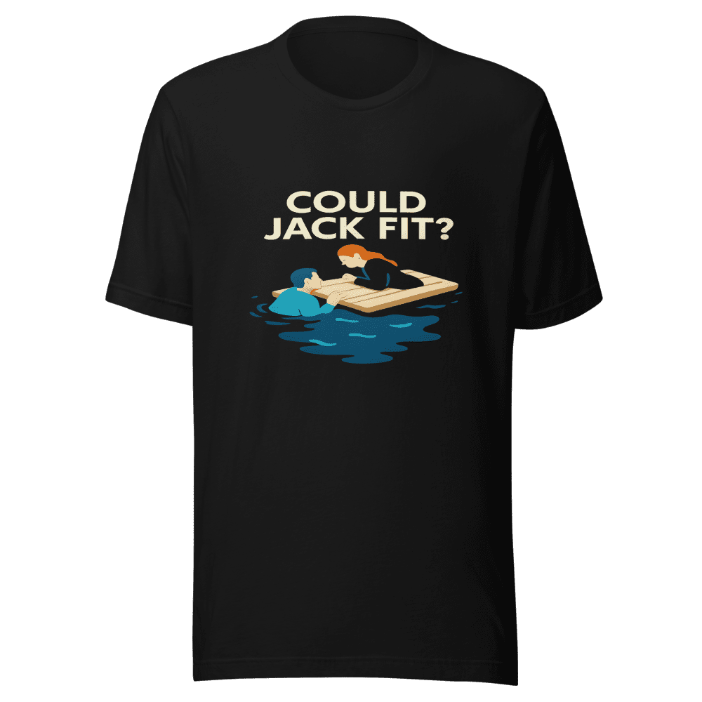 Dive into the internet’s most heated debate with our Titanic Door Theory T-Shirt! This design immortalizes the viral tweet that reignited the age-old question: Could Jack have fit on the door with Rose? Join the millions who have weighed in on this iconic movie moment. Own a piece of internet history and spark conversations wherever you go. This tee is more than just apparel; it’s a statement. It’s a symbol of unwavering opinions and the never-ending search for cinematic truth. Made from super-soft cotton, this tee is comfortable enough for binge-watching Titanic for the hundredth time. Features a classic fit that looks good on everyone. Available in sizes S, M, L, and XL. Easy to care for, normal wash instructions apply. Don’t miss out! Get yours now and become part of the legend!