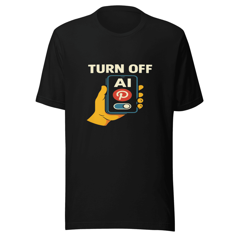Stop the scroll! You can turn off AI images on Pinterest, and this shirt celebrates that victory! This tee is going viral, because you spoke, and Pinterest listened. Show your support for human artists and make a statement against AI-generated content with this must-have tee. This comfortable and stylish tee is perfect for artists, designers, and anyone who believes in the power of human creativity. Wear it to your next art class, coffee shop meetup, or online brainstorming session. Let the world know where you stand! Available in sizes S, M, L, and XL. Wash instructions are normal. Get yours now before they’re all gone! Join the movement and let your voice be heard! Order now and rock the most talked-about tee of the season!