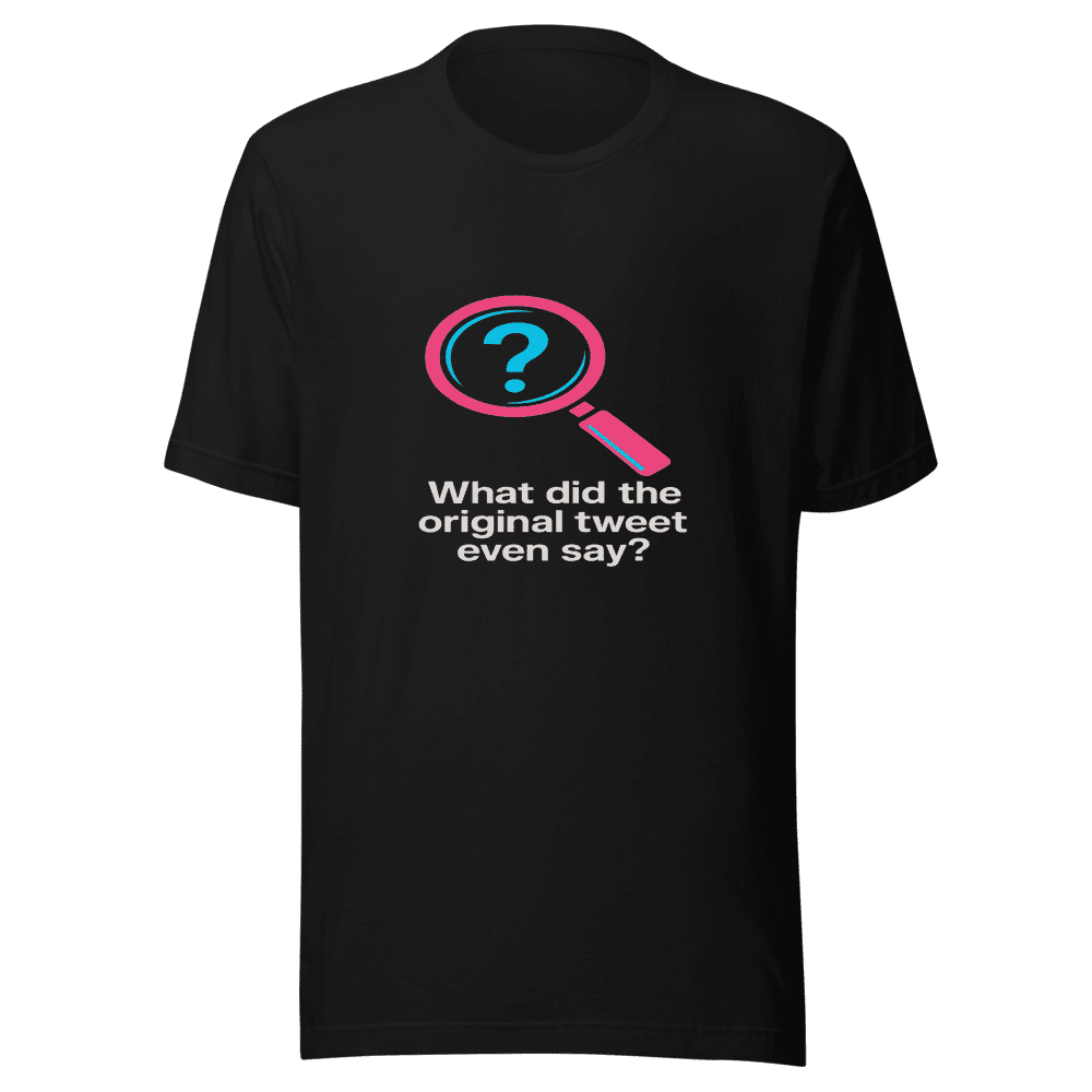 You saw it, you loved it, now wear it! This What Did The Original Tweet Say T-Shirt is inspired by the viral tweet that had everyone online racking their brains. Join the trend and represent internet humor with this comfy tee. Be the first to sport this iconic design and watch the heads turn! This shirt isn’t just a piece of clothing; it’s a conversation starter, a badge of internet honor, and a symbol of shared online experiences. Don’t miss out on owning a piece of viral history! Made from soft, breathable fabric, this t-shirt is perfect for everyday wear. Available in sizes S, M, L, and XL. Easy to care for: normal wash instructions. Grab yours today and show the world you’re in the know! Limited stock available, so act fast before this viral sensation sells out.