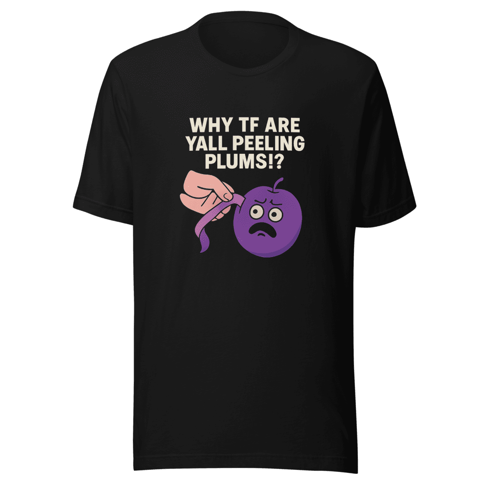 Why are yall peeling plums? Join the viral sensation with this must-have t-shirt! Inspired by the hilarious tweet that took the internet by storm, this tee is your ticket to instant meme status. Don’t be the last to get on board – grab yours now and show the world you’re in on the joke. This comfy tee is perfect for everyday wear and guaranteed to spark conversations. Get ready to turn heads and spread laughter wherever you go. Sizes are S,M,L & XL. Wash instructions are normal. Level up your wardrobe with this iconic piece of internet culture. Limited stock available, so don’t miss out! Order now and become part of the peeling plums phenomenon!
